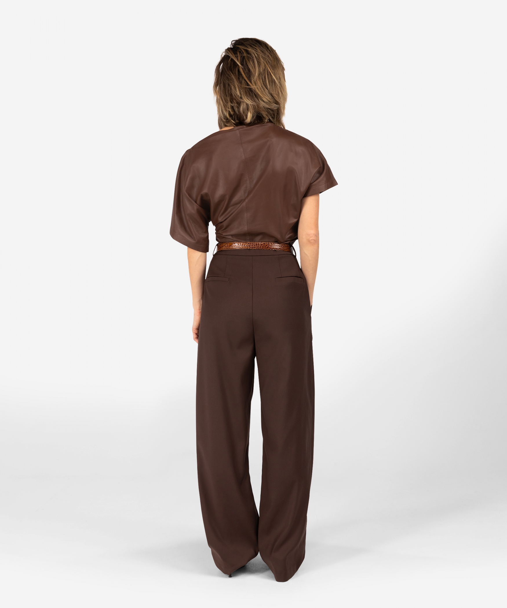 De Perria Pantalon in de kleur Hazelnut is een goede basis voor jouw herfst en winter garderobe dit seizoen. De broek heeft een high waisted fit, de broekspijpen zijn wijd en straight en de Perria kan gesloten worden doormiddel van een rits en knoop. Het model op de foto combineert de Perria met de Tyna Blouse in dezelfde Hazelnut kleur en stijlt de look af met de Acro Riem.Model is 1,76m en draagt maat 36