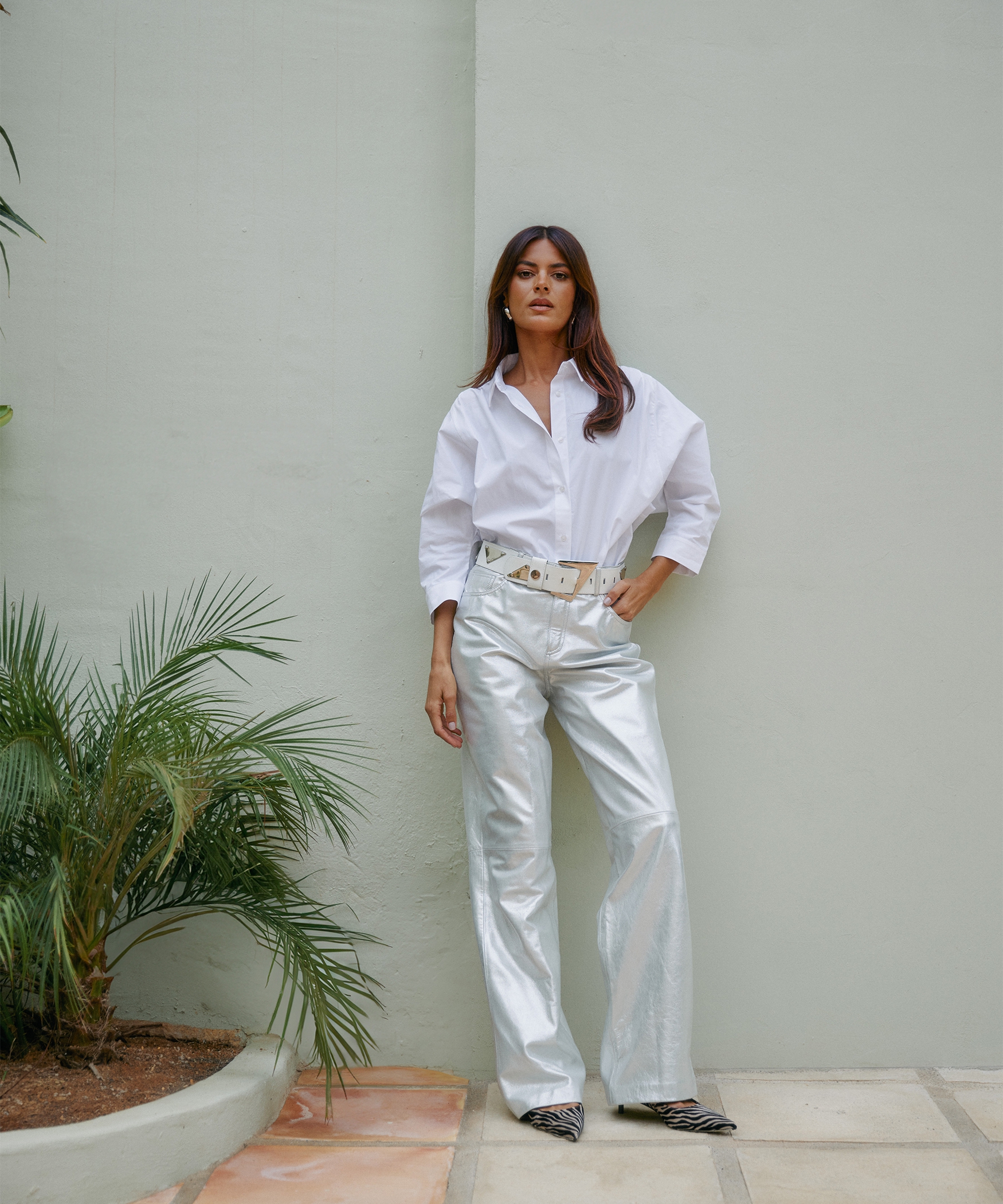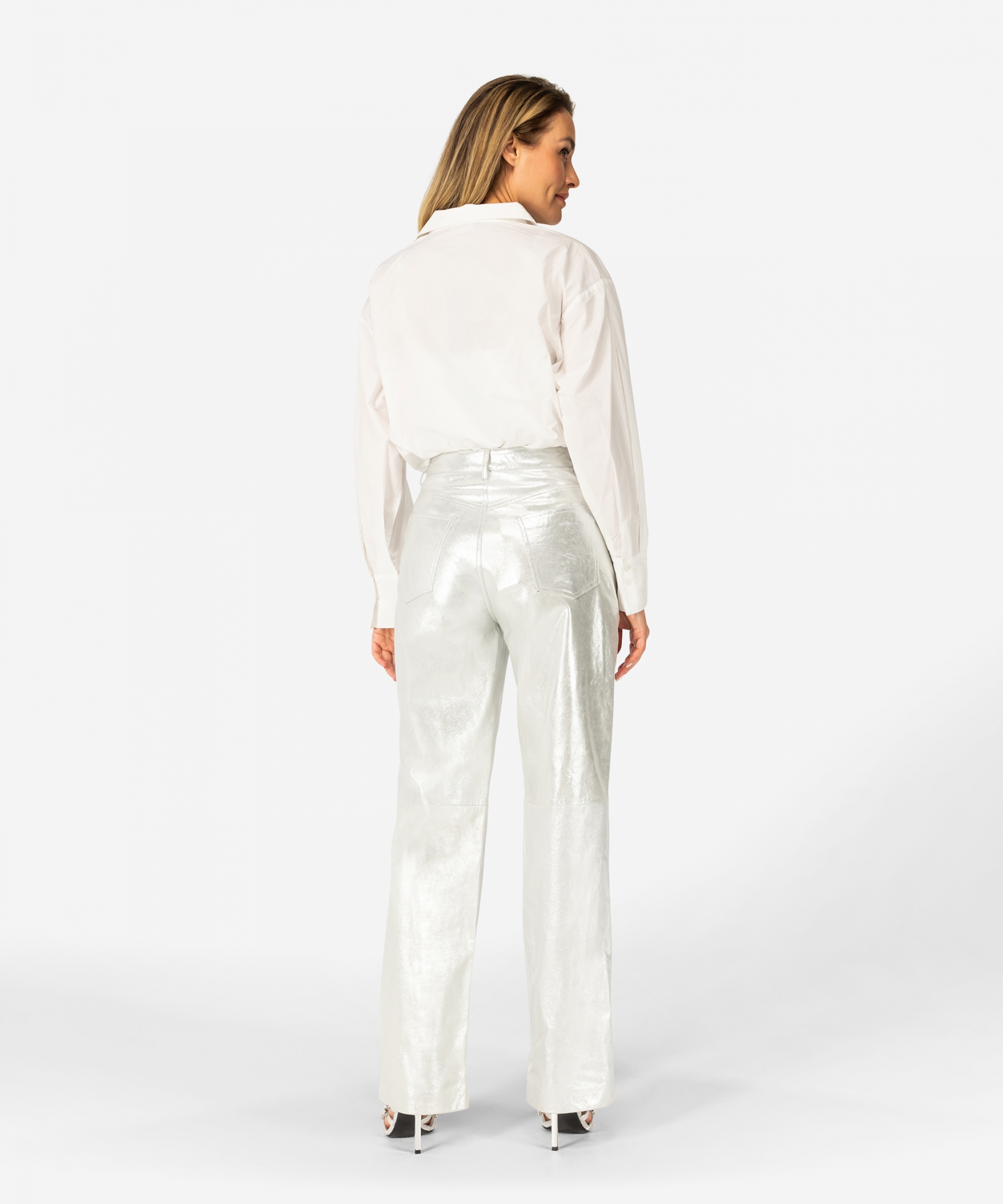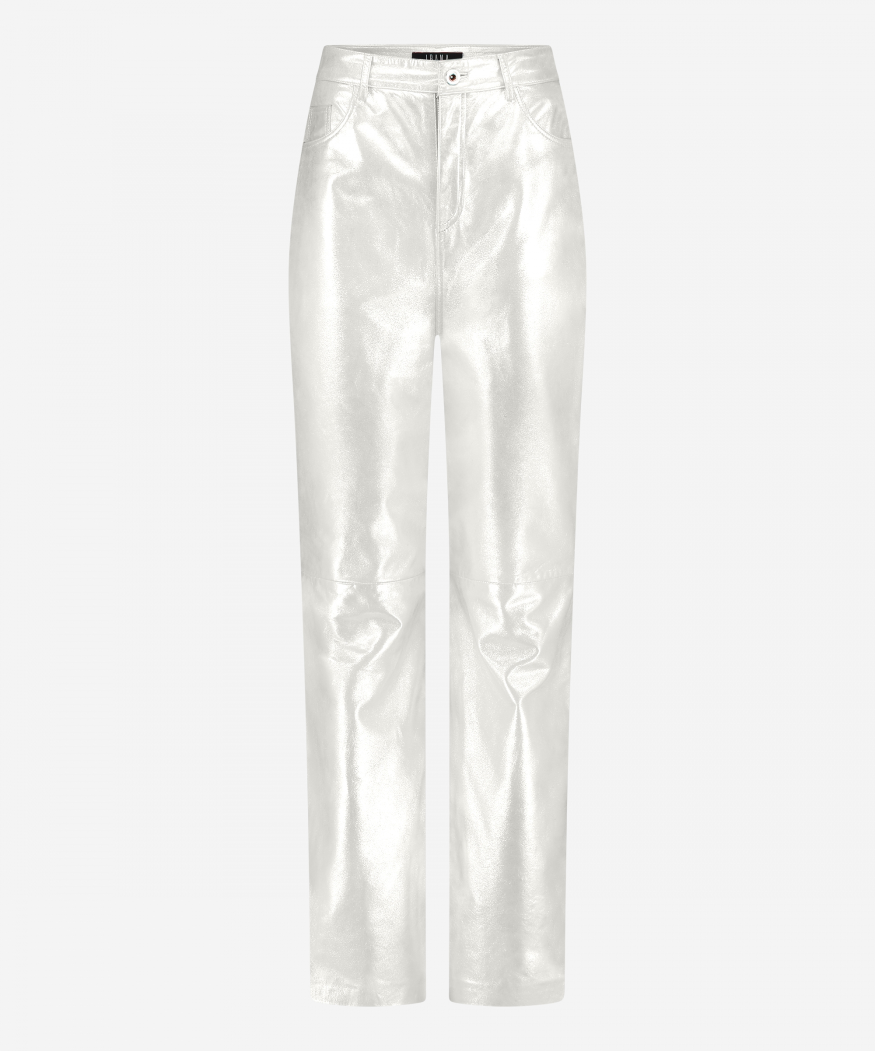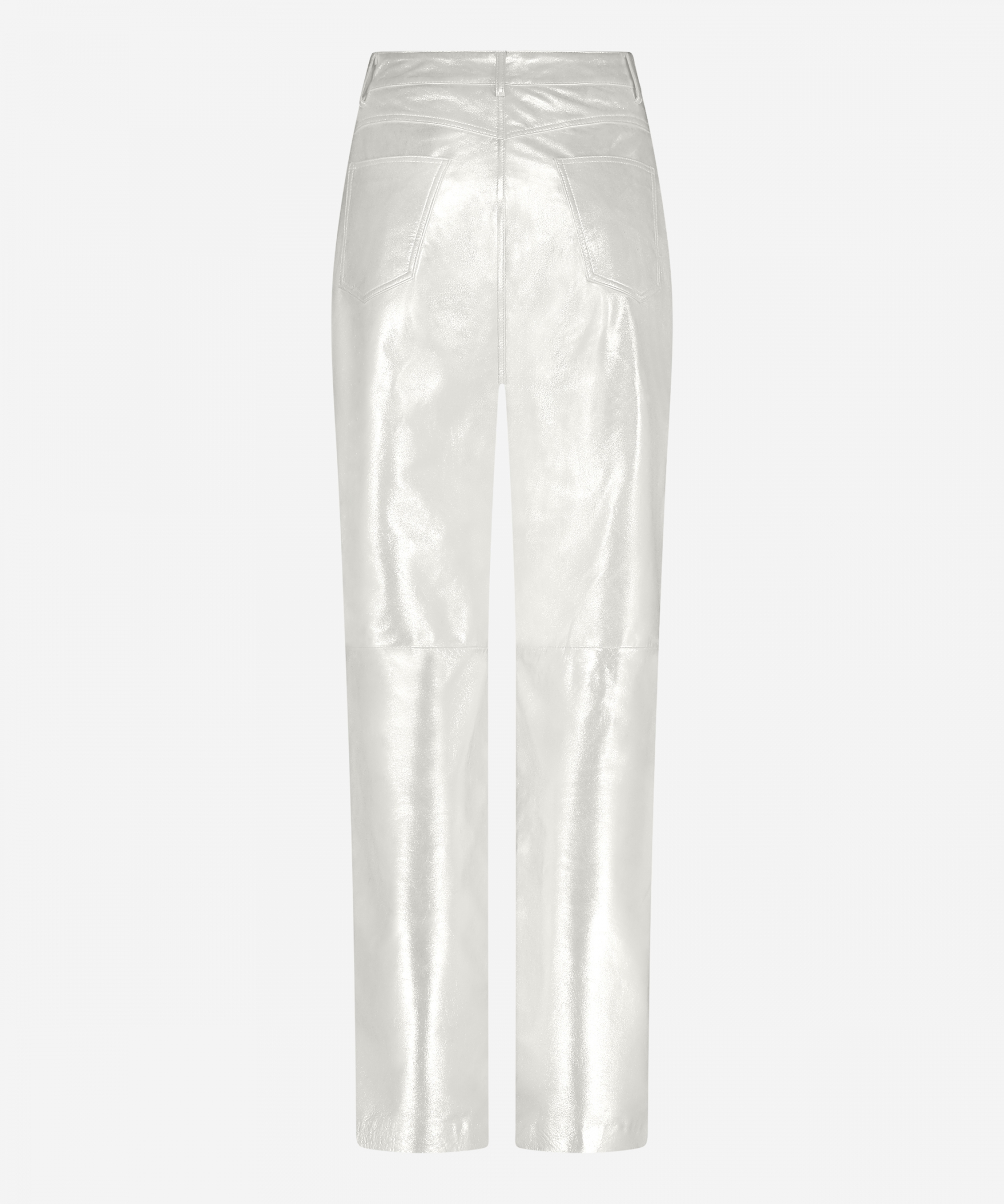 Must-have alarm! Maak kennis met de Pican Pants in de kleur Sparkling Silver. De broek is gemaakt van hoogwaardig non-stretch kwaliteitsleer en heeft rechte pijpen. Combineer de broek met het bijpassende Jules Jacket in de kleur Sparkling Silver of combineer net als het model op de foto de broek met de witte Teula Blouse.| Buitenzakken: | Twee zijzakken |