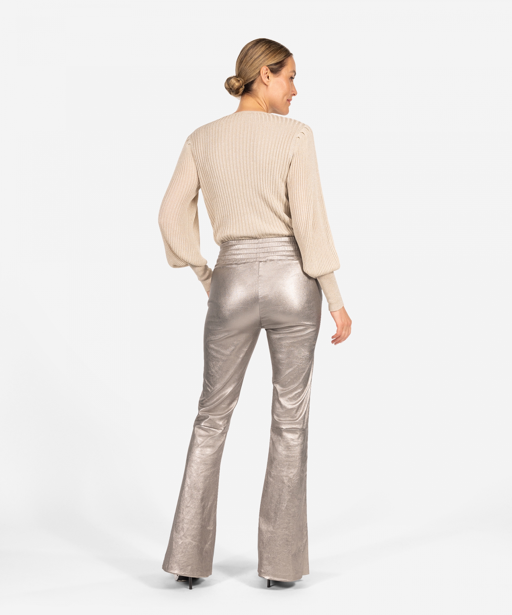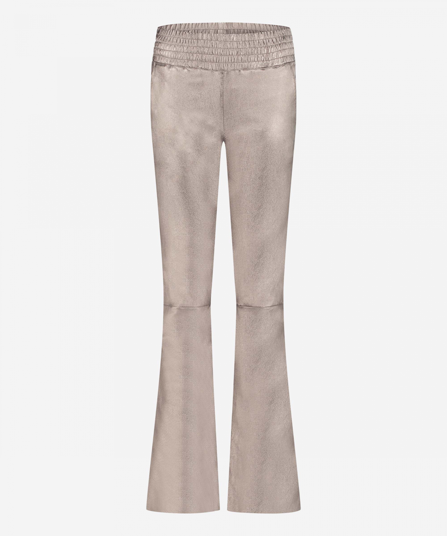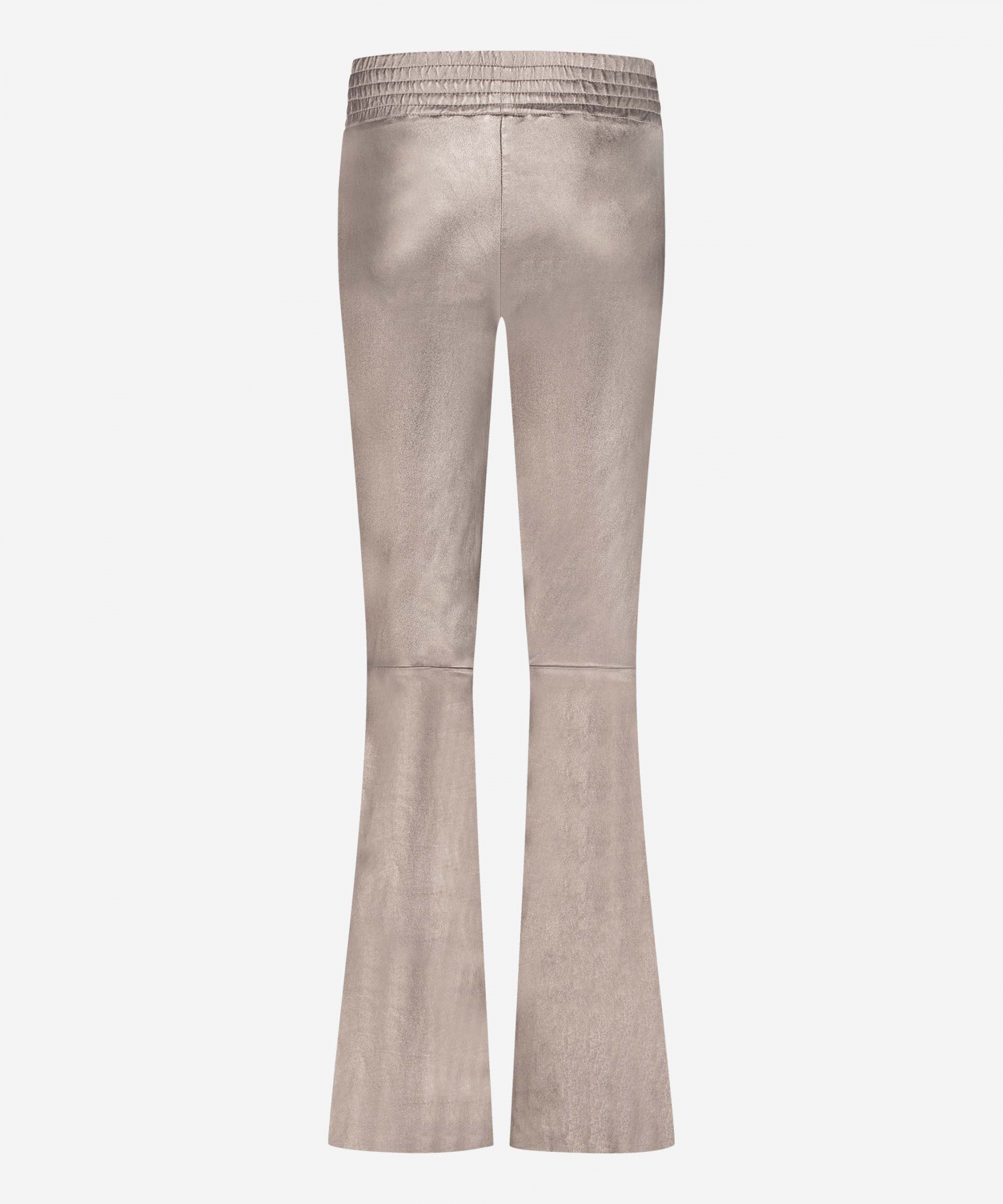 Classy & comfy! De IBANA Pinnie broek in de kleur Metallic Classic Grey is gemaakt van een comfortabele leer kwaliteit met stretch. De broek is high waisted en sluit aan de bovenzijde mooi aan en loopt uit in flared broekspijpen. Voor het complete look combineer je de broek met de Totie in de kleur Coco White. De IBANA Pinnie broek is verkrijgbaar in de kleuren Red Bomb, Deep Teal & Midnight Blue.
