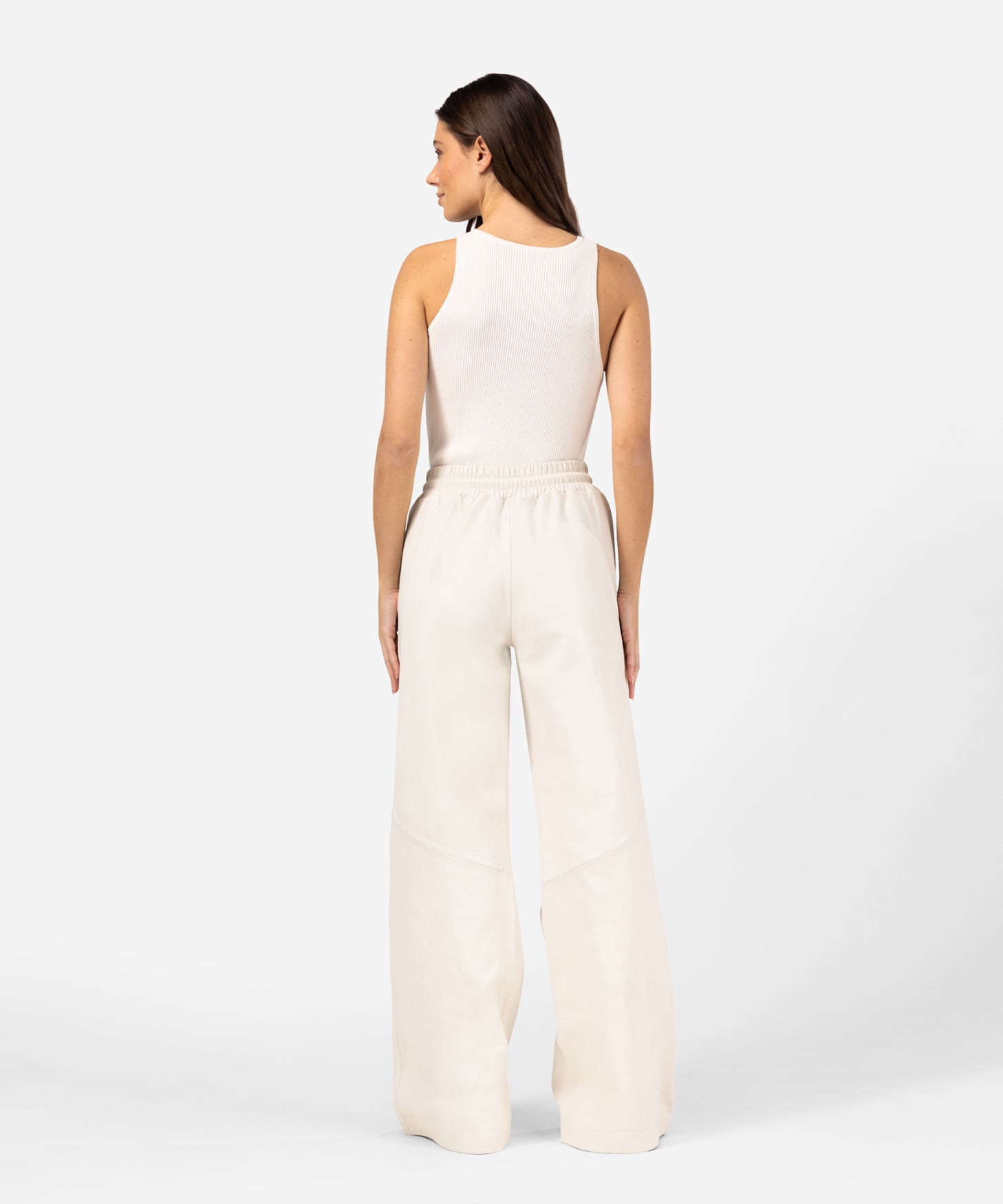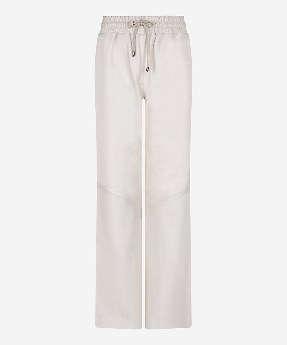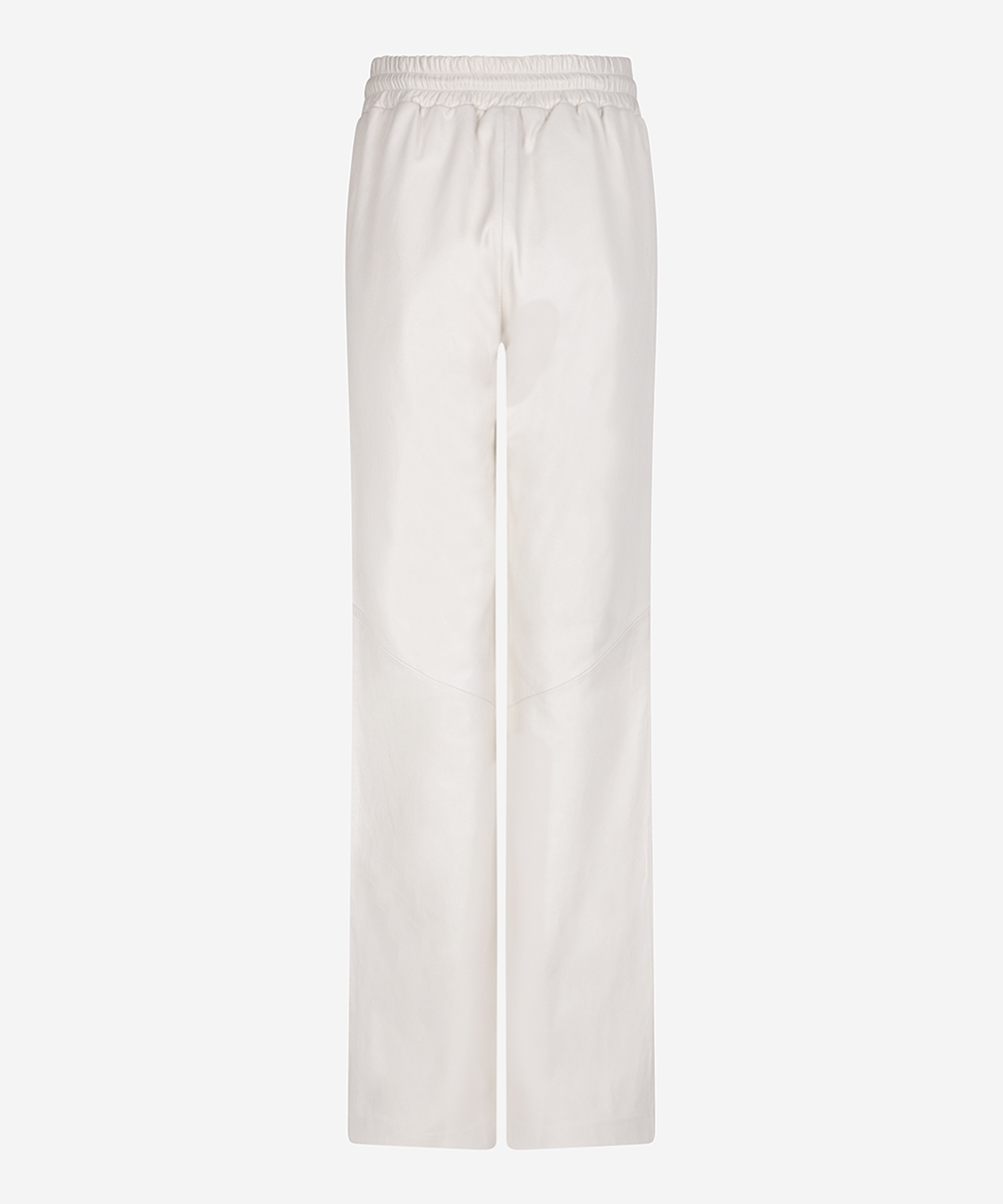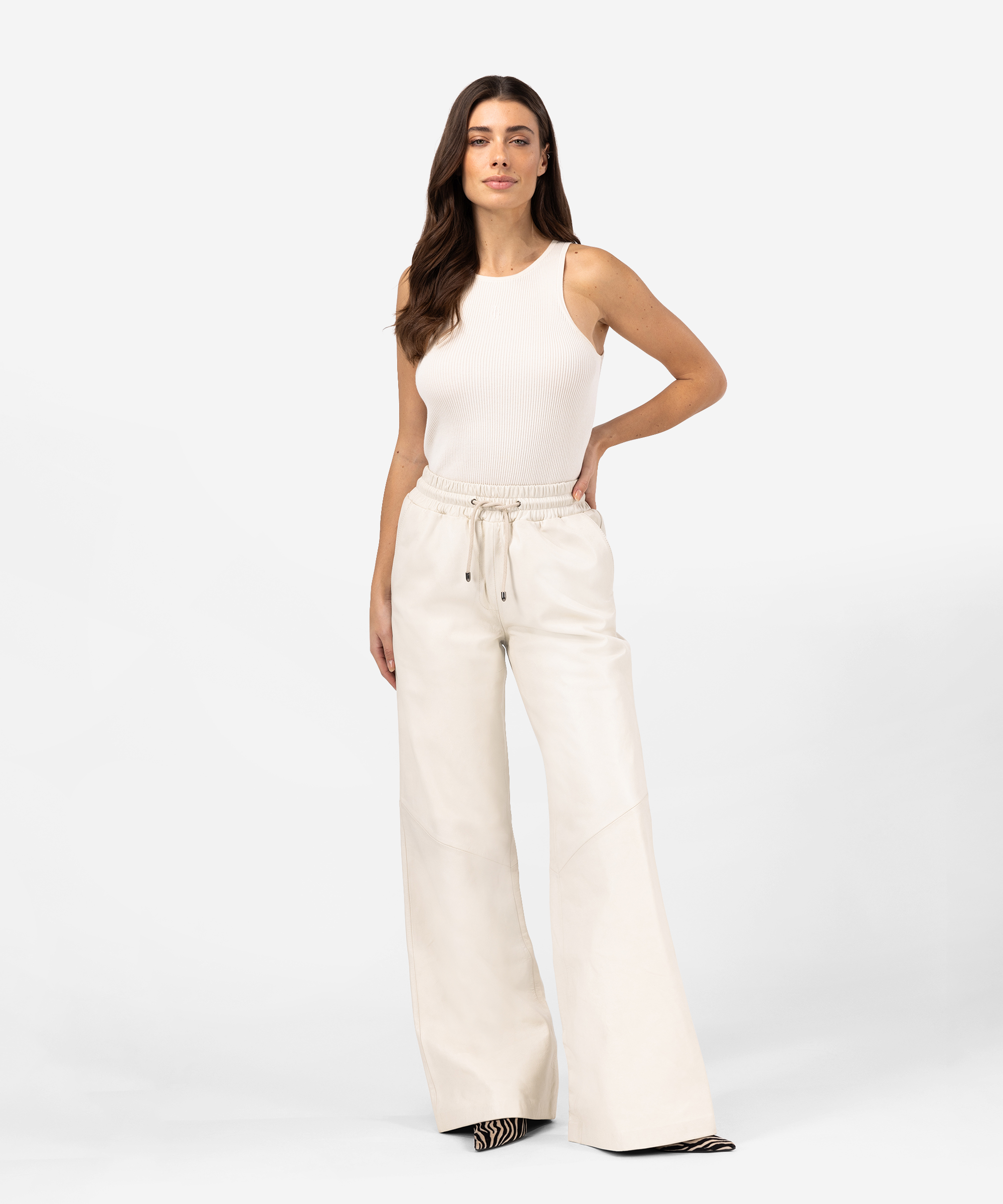 Maak kennis met de Pippa Pants in de kleur Buttercream. De broek is gemaakt van hoogwaardig non-stretch leer en heeft een high waist fit met wijde broekspijpen. Daarnaast bevat de Pippa twee steekzakken en een elastische tailleband met trekkoortjes. Hierdoor zit de broek comfortabel en is de broek naar eigen wens strakker en losser te strikken. De binnenbeenlengte van de Pippa is bij elke maat 86 centimeter. Combineer de broek net als het model met de Tamora Top in het wit uit de Essential Collection. De broek is ook verkrijgbaar in de kleur Black.| Binnenbeenlengte: | 86cm |