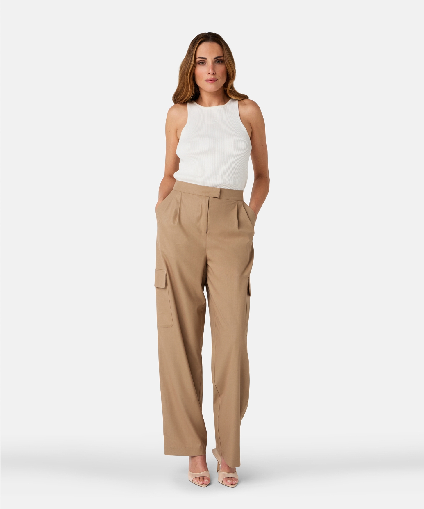 De Piya pants in Dark Sandstone heeft een wijde fit en klepzakken op het bovenbeen, wat doet denken aan een nette cargo broek. Met een binnenbeenlengte van 81 cm en steekzakken biedt deze broek een moderne en comfortabele uitstraling. Styling tip: Combineer met de bijpassende Jiya blazer voor een zakelijke look, of draag casual met een basic top en sneakers.Binnenbeenlengte: | 81cm |