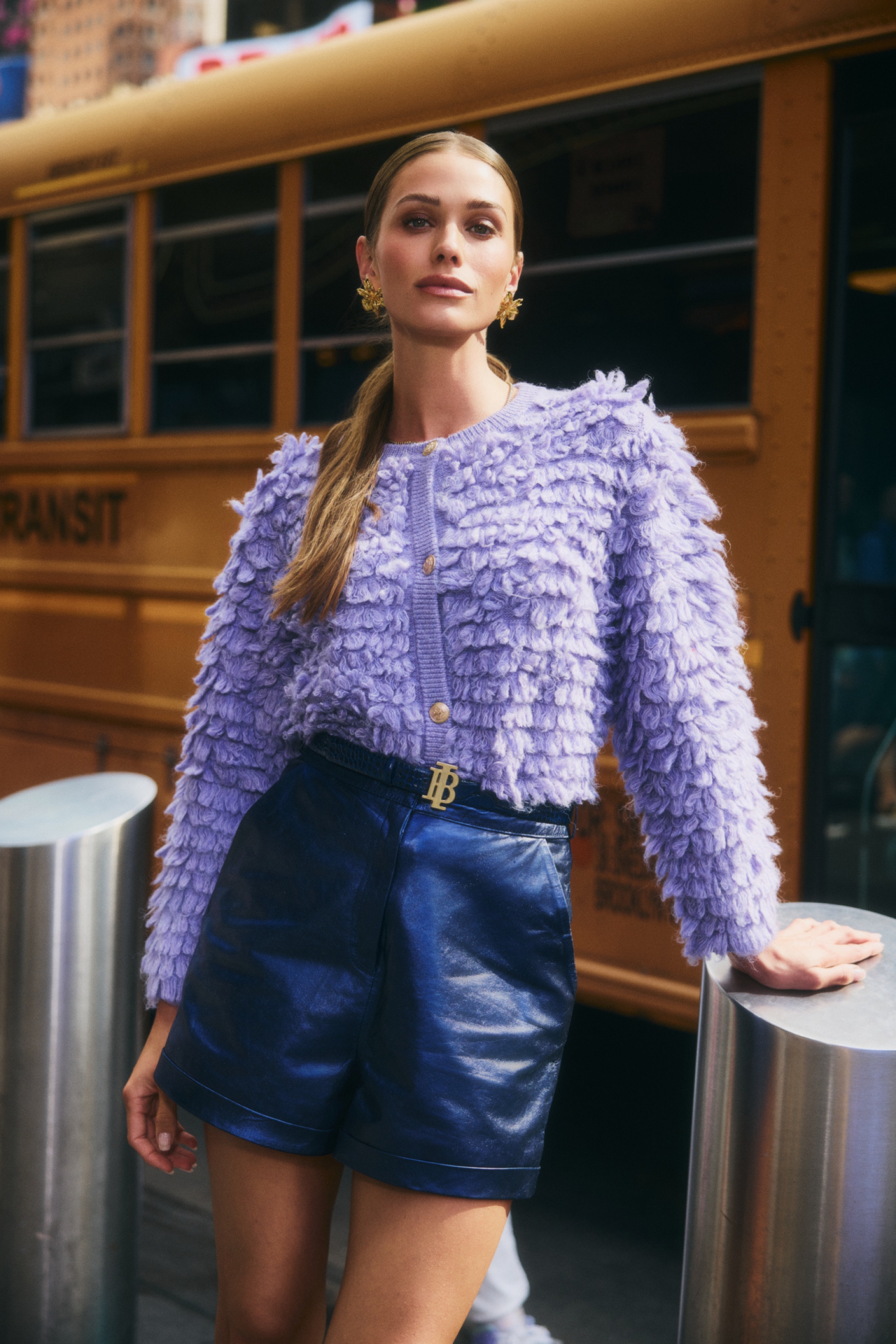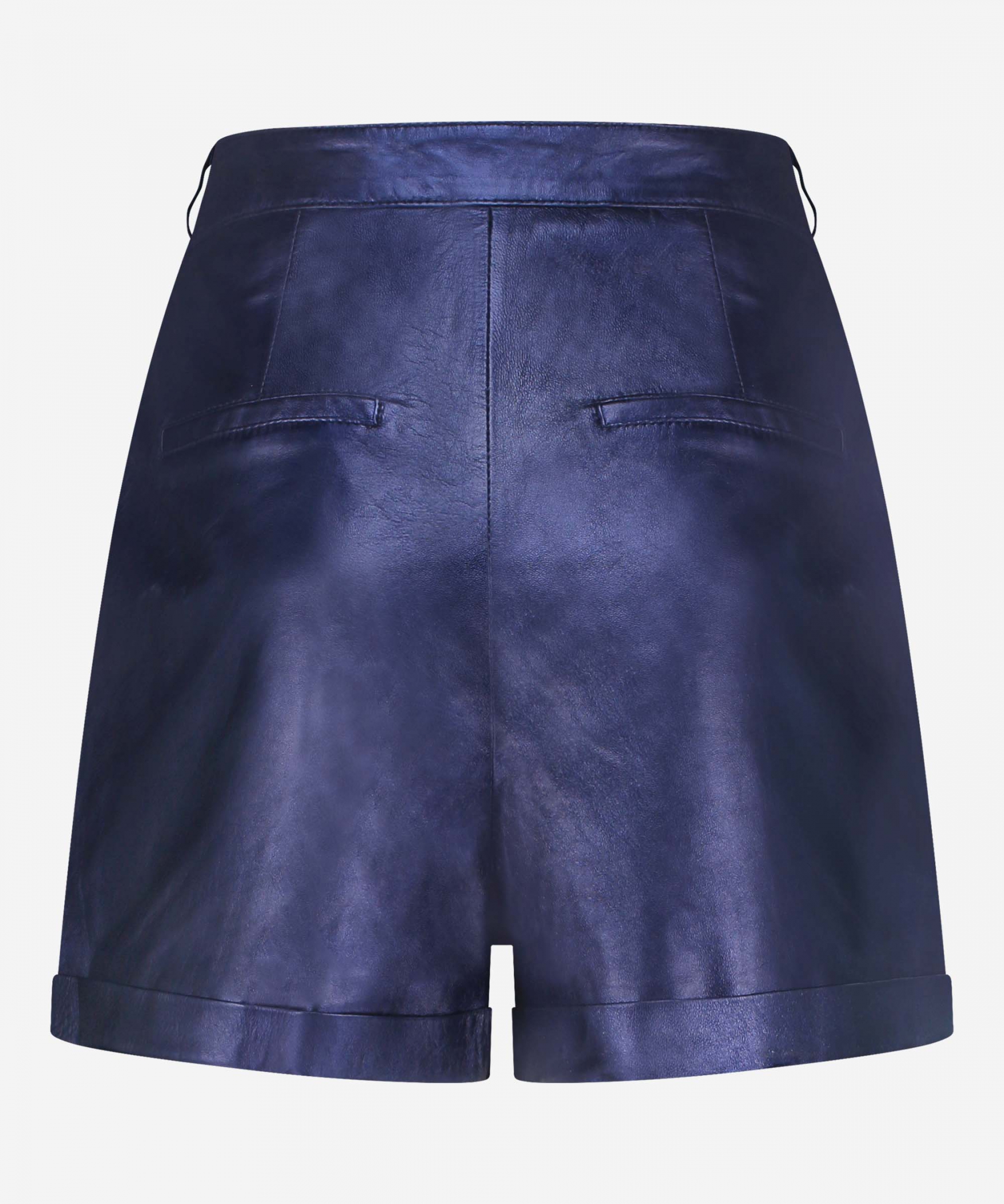 Eyecatching item! Maak kennis met de leren Sanny shorts in de kleur Metallic Midnight Blue. Een high-waisted korte broek met steekzakken en riemlusjes zodat je de shorts kan combineren met jouw favoriete riem! Het model op de foto draagt de Sanny samen met de Tjico trui in de kleur Midnight Blue en Icon Belt in het donker blauw. Voor de koudere winterdagen kan je ervoor kiezen om de shorts te dragen met een panty. Wil je dit broekje graag naar een feestelijke gelegenheid dragen? Combineer het dan met de Tava Leopard Blue top.