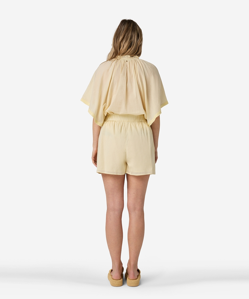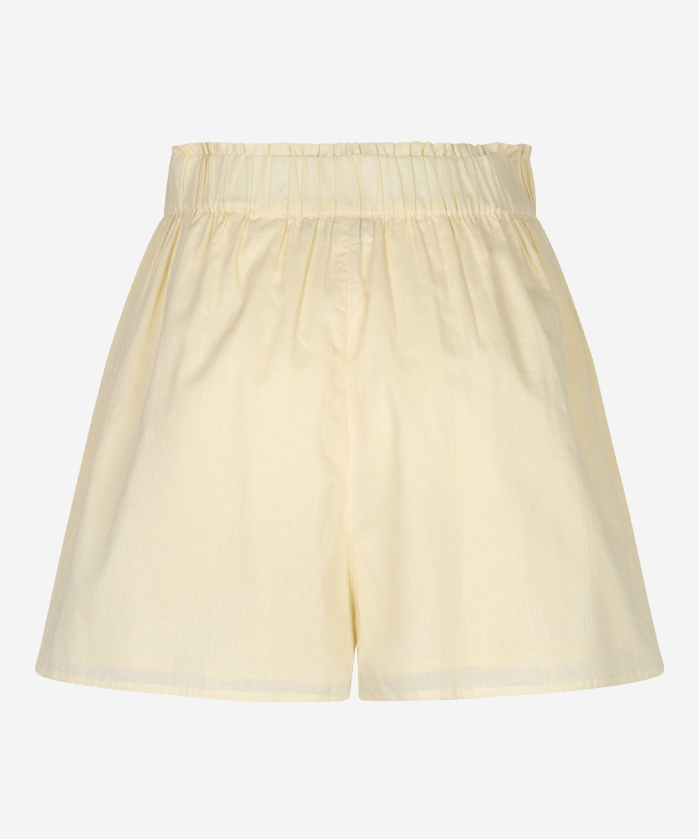 De Sarina shorts in de kleur Manteca Yellow is gemaakt van 100% katoen en heeft een frisse, zomerse uitstraling. De shorts heeft twee steekzakken en een binnenbeenlengte van 8 cm. De stof is non-stretch.