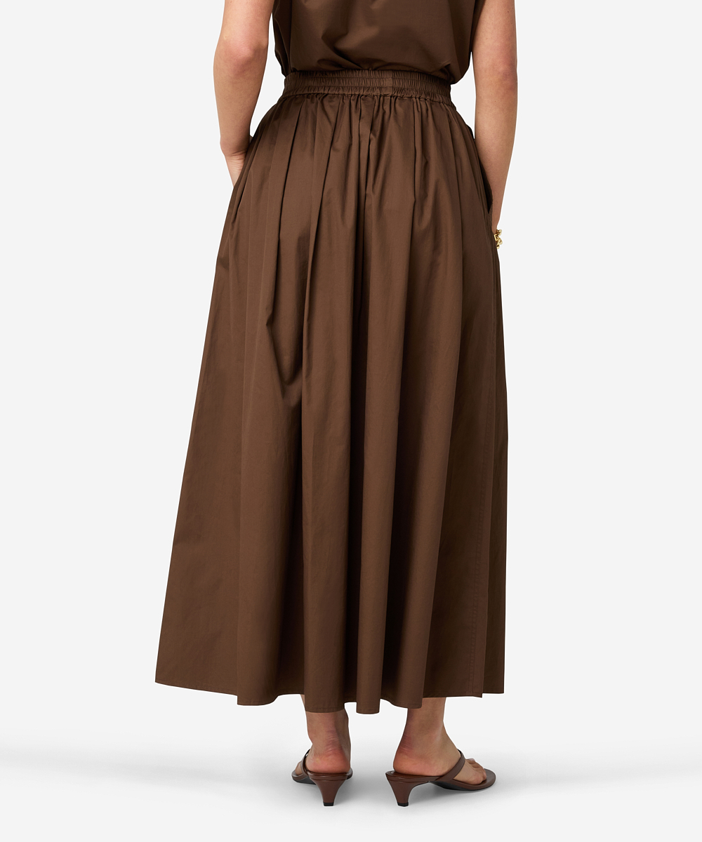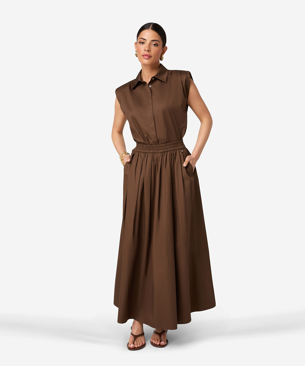 De Sanai skirt in Bean Brown heeft een wijde pasvorm en is gemaakt van 100% katoen. De rok heeft twee steekzakken en een high-waisted fit. De stretch waistband zorgt voor extra draagcomfort en een mooie pasvorm. Combineer met de Tanai top voor een stijlvolle set of draag de rok met andere items uit je garderobe.