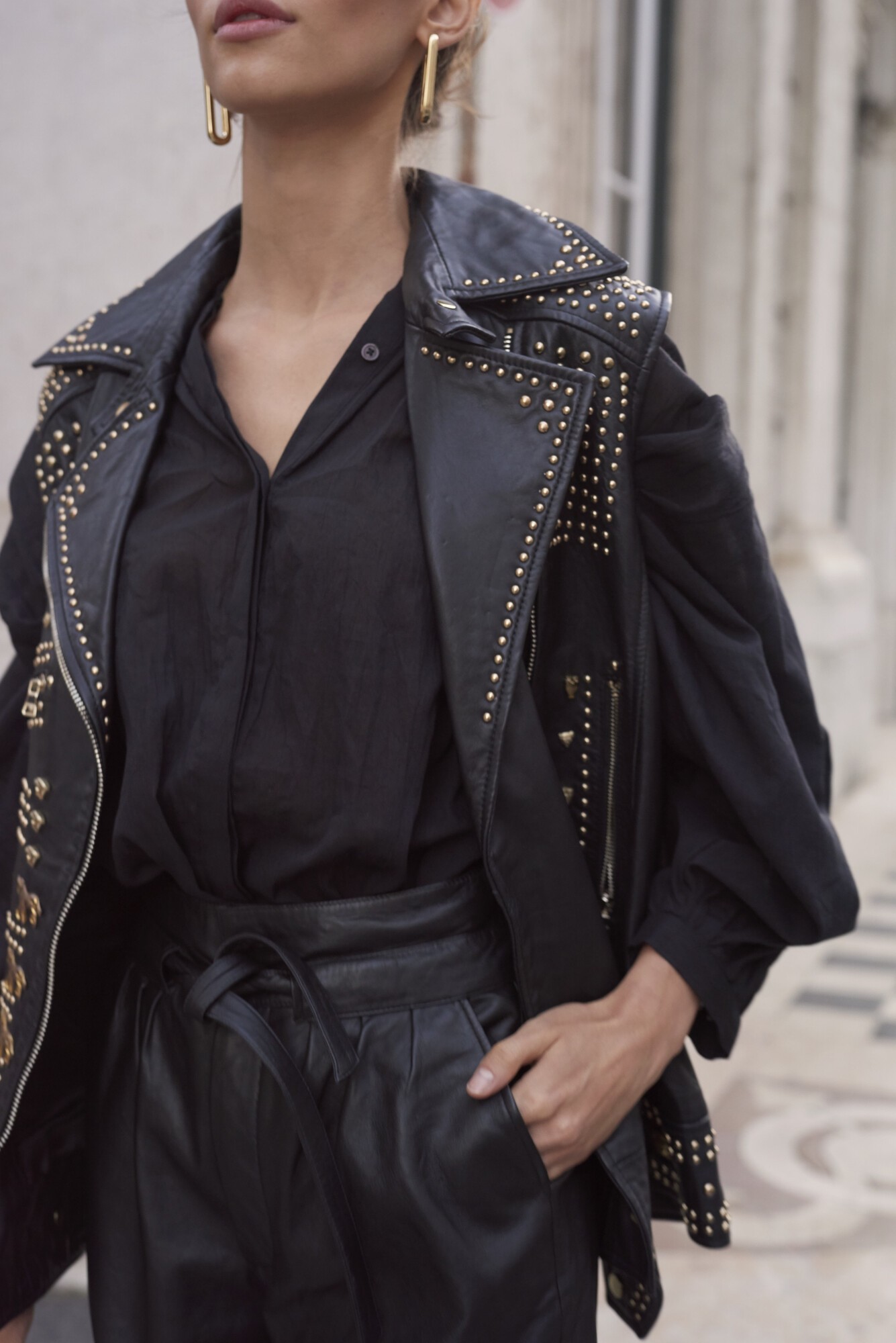 met gouden studs, laser cut blouse en onze dubbelgekleurde