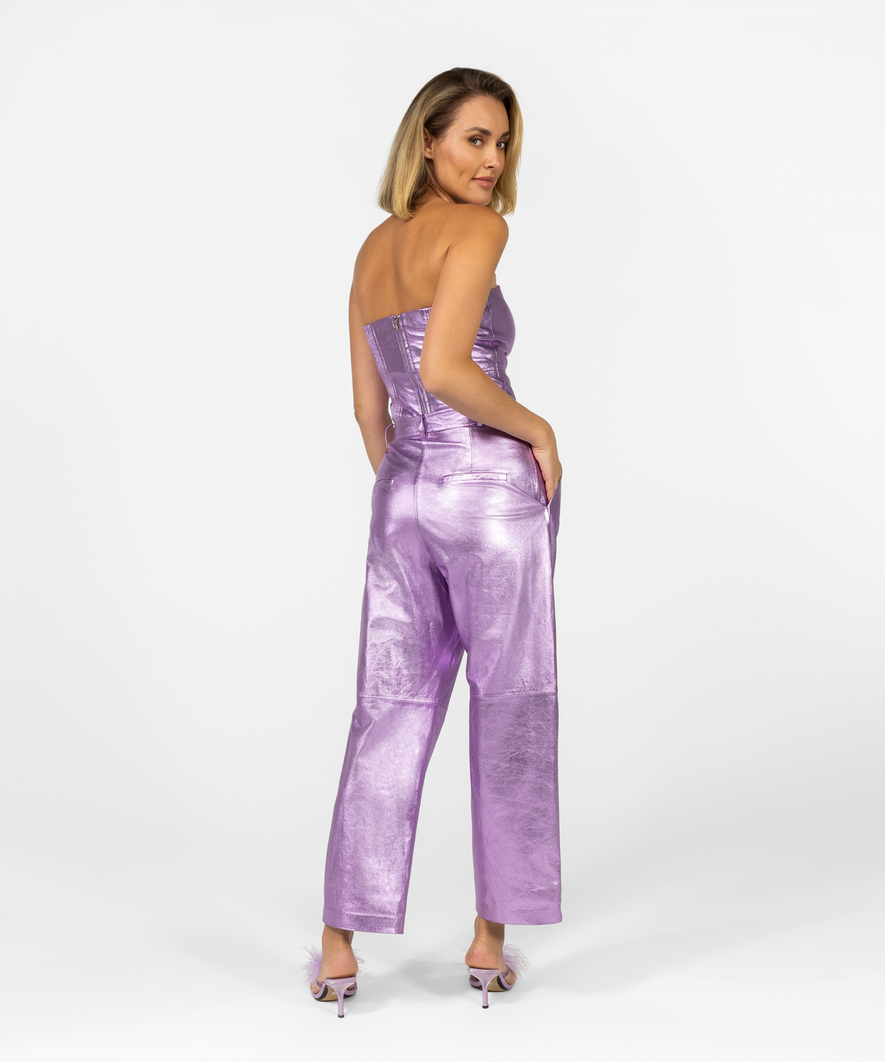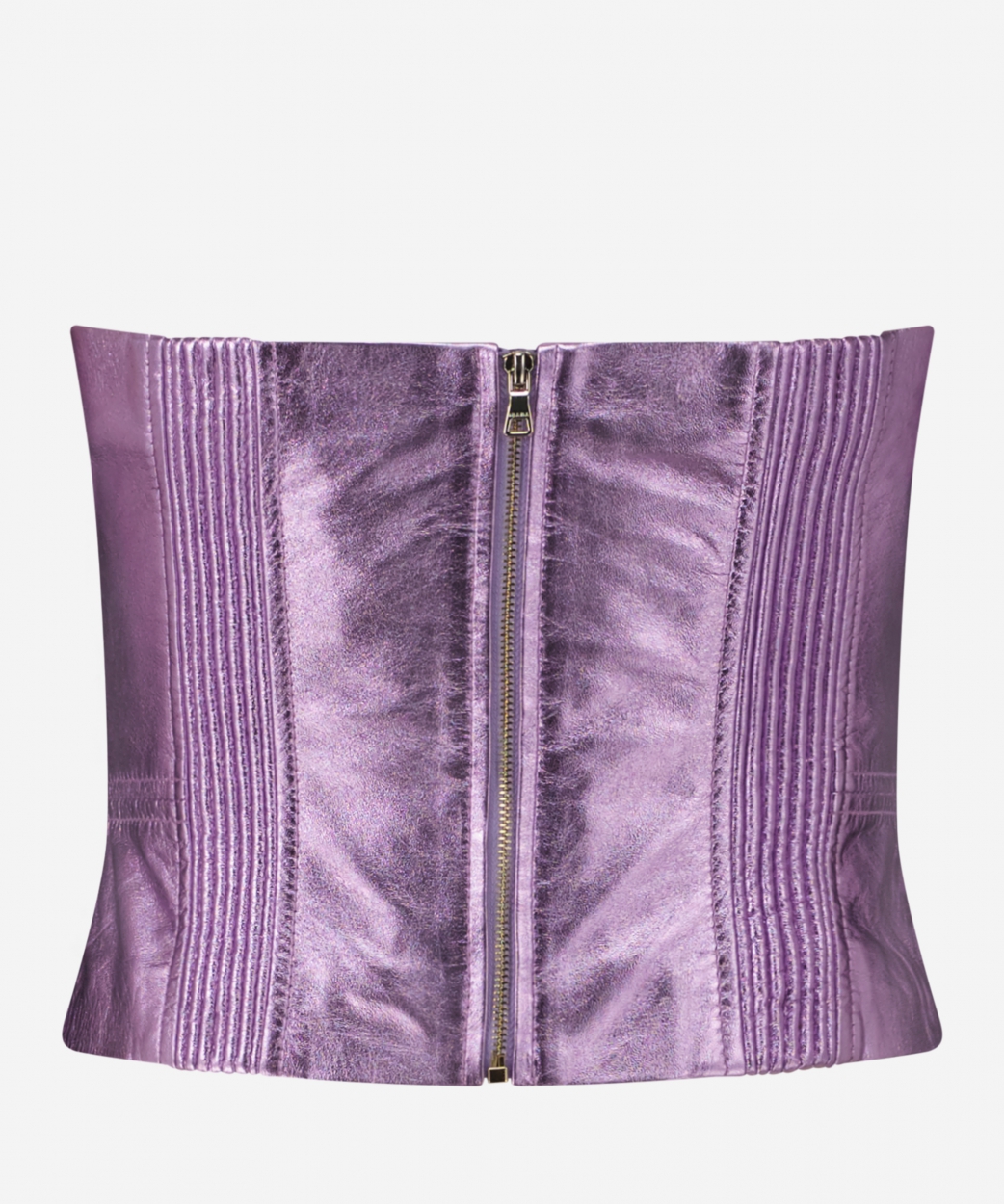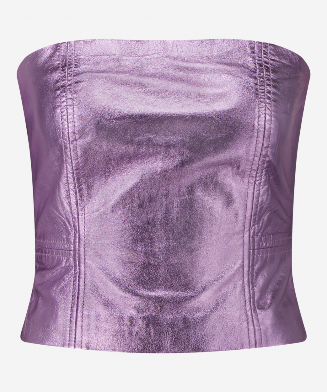Maak kennis met de Taar top in Metallic Soft Lilac. Deze strapless stijl heeft een nauwsluitend silhouet met stikseldetails voor een korsetachtig effect. De Taar is gemaakt van het zachtste leer voor ultiem comfort. De top wordt gesloten middels een ritssluiting aan de achterkant. Combineer de top met de Perfecta Metallic pants in Soft Lilac voor een prachtige totaal look. Perfect(a) voor een speciale gelegenheid.