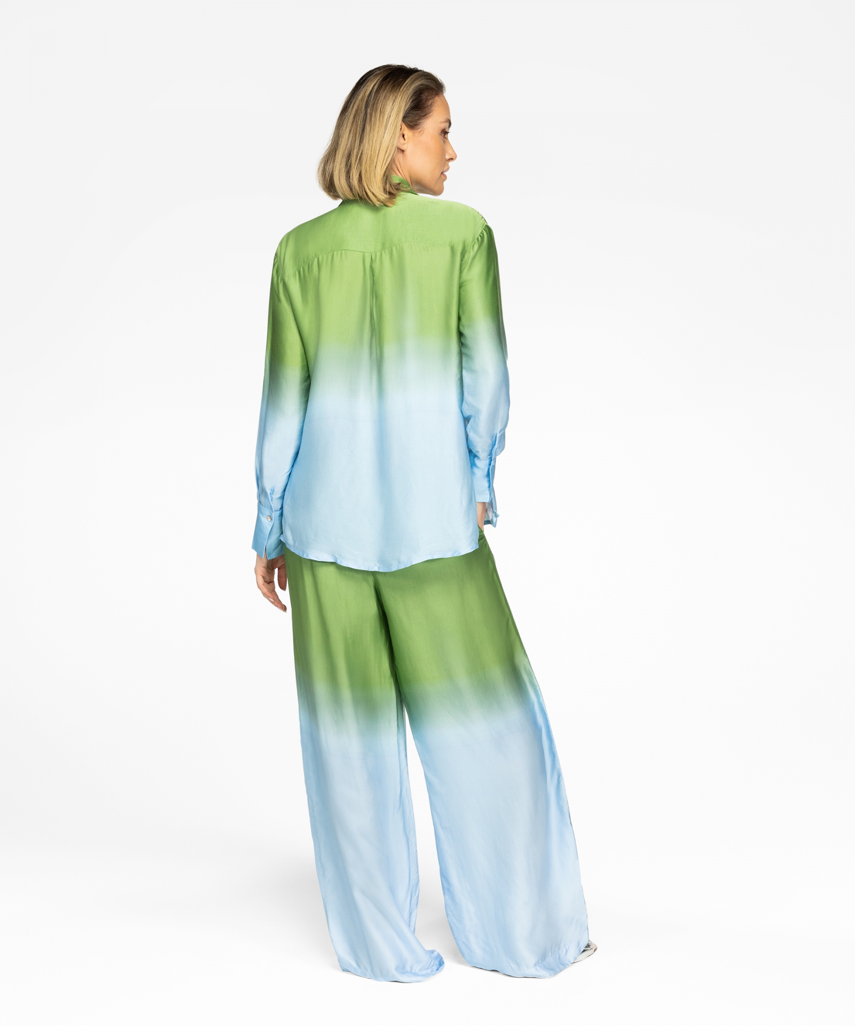 De Talmy blouse in de nieuwe Dipdye print is gemaakt van een zachte viscose stof die zorgt voor een elegante fit. De blouse heeft een kraag die doorloopt in een v-hals en knopen sluiting aan de voorkant. De blouse heeft lange mouwen welke zijn afgewerkt met machetknoopjes. Voor een tor-son-ton look cre�er je de blouse met de Palmy short of de Palmtri broek beide in dezelfde print.
