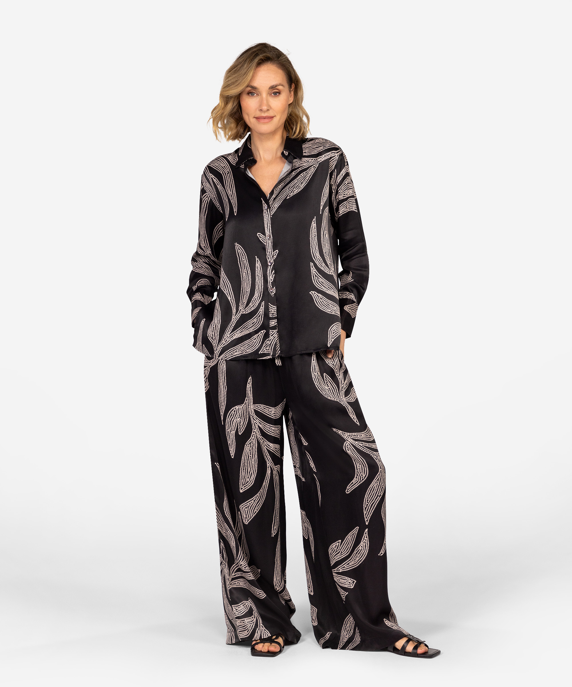 De Talmy blouse in de nieuwe Flower print is gemaakt van een zachte viscose stof die zorgt voor een elegante fit. De blouse heeft een kraag die doorloopt in een v-hals en knopen sluiting aan de voorkant. De blouse heeft lange mouwen welke zijn afgewerkt met machetknoopjes. Voor een tor-son-ton look combineer je de blouse met de Palmtri broek, beide in dezelfde print.