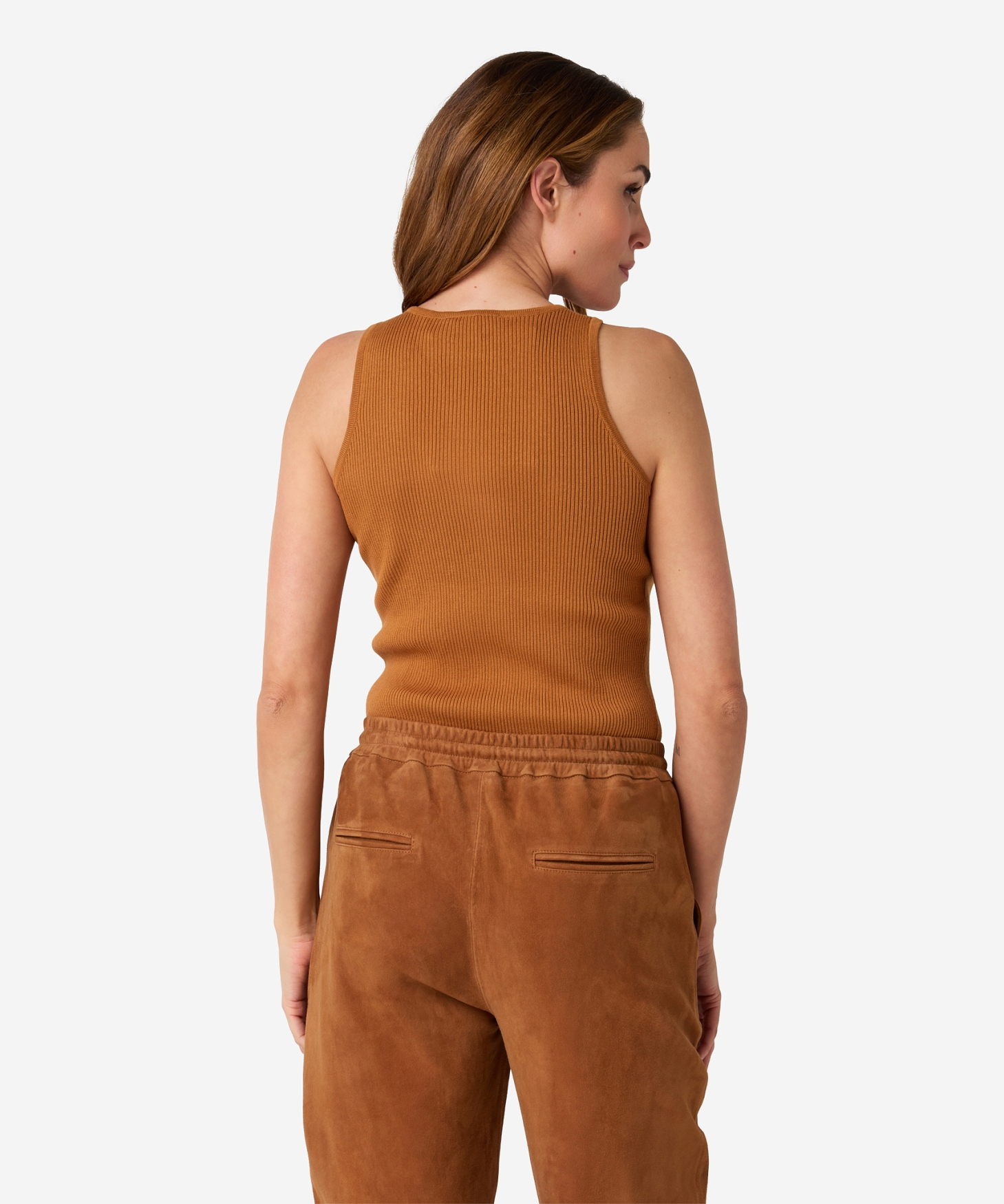 De Tamora top in Cashew Brown is een comfortabele stretch top van ribkatoen met een aangesloten pasvorm. Het subtiele IBANA icoon bij de hals geeft dit basic item een verfijnde touch. De top is een veelzijdige essential en verkrijgbaar in meerdere kleuren. Combineer net als het model met de bijpassende Panna broek voor een ton-sur-ton look.| Categorie: | Tops en Truien |