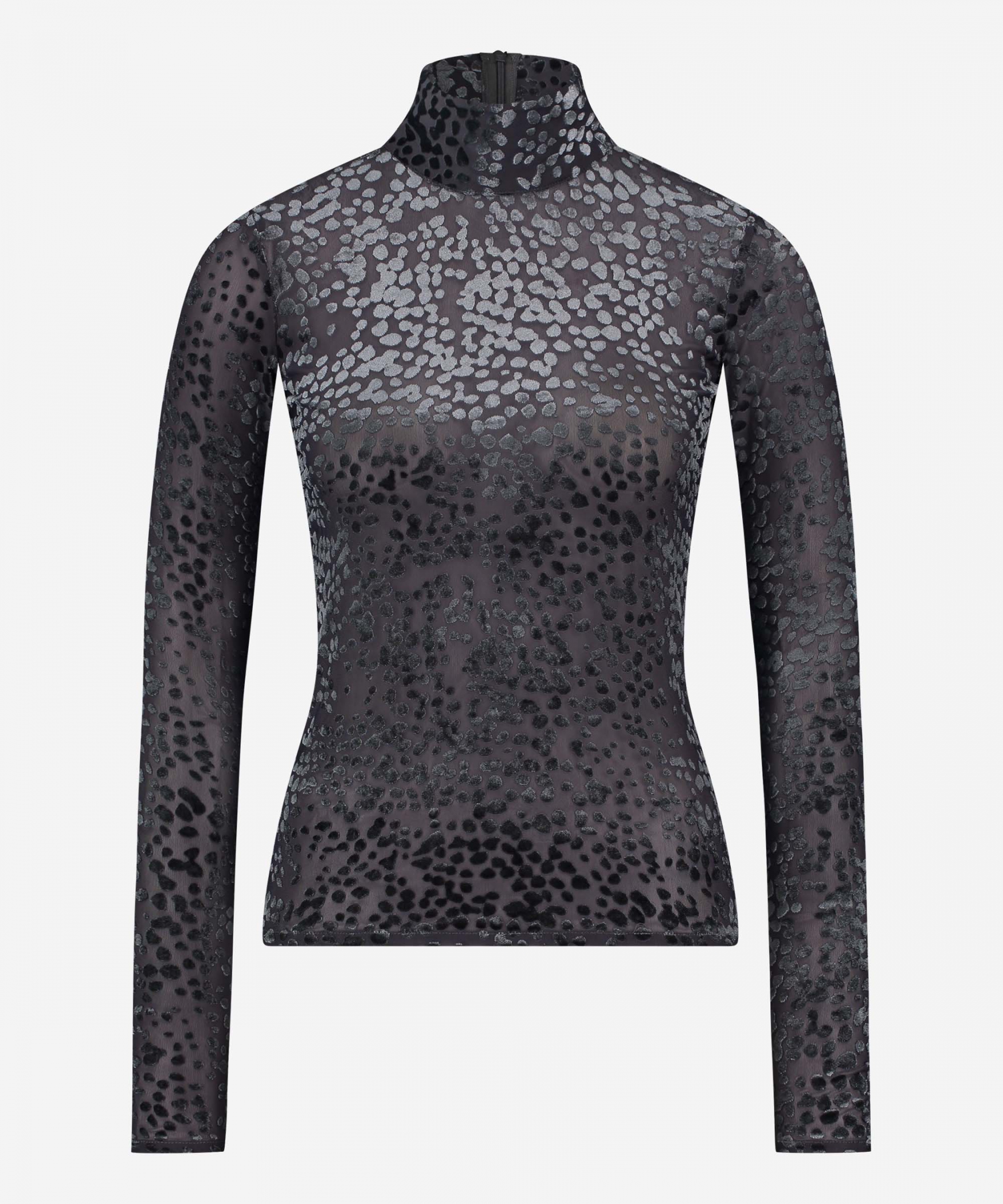 DE TELANA PANTER PRINT TOP IN STONE BLUE