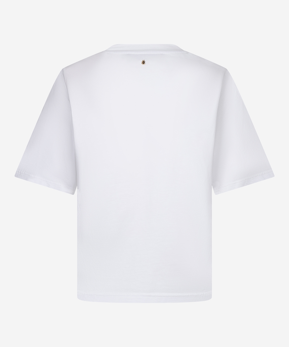 De Temaria top in de kleur Perla White is een tijdloze essential. Gemaakt van 100% katoen met stretch, biedt deze top een comfortabele regular fit, korte mouwen en een ronde hals. De top heeft uitneembare schoudervullingen. De minimalistische uitstraling maakt de top eindeloos combineerbaar.