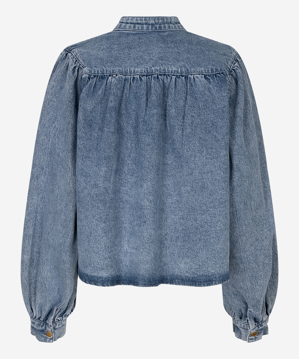 De Tessa top in Faded Denim heeft een wijde fit en volumineuze pofmouwen voor een vrouwelijke, eigentijdse look. De knoopsluiting aan de voorkant geeft het item een klassieke touch, terwijl de denimstof zorgt voor een stoer karakter. Combineer met de bijpassende Pendan jeans voor een complete denim-on-denim look.Categorie: | Jassen, Tops en Truien |
