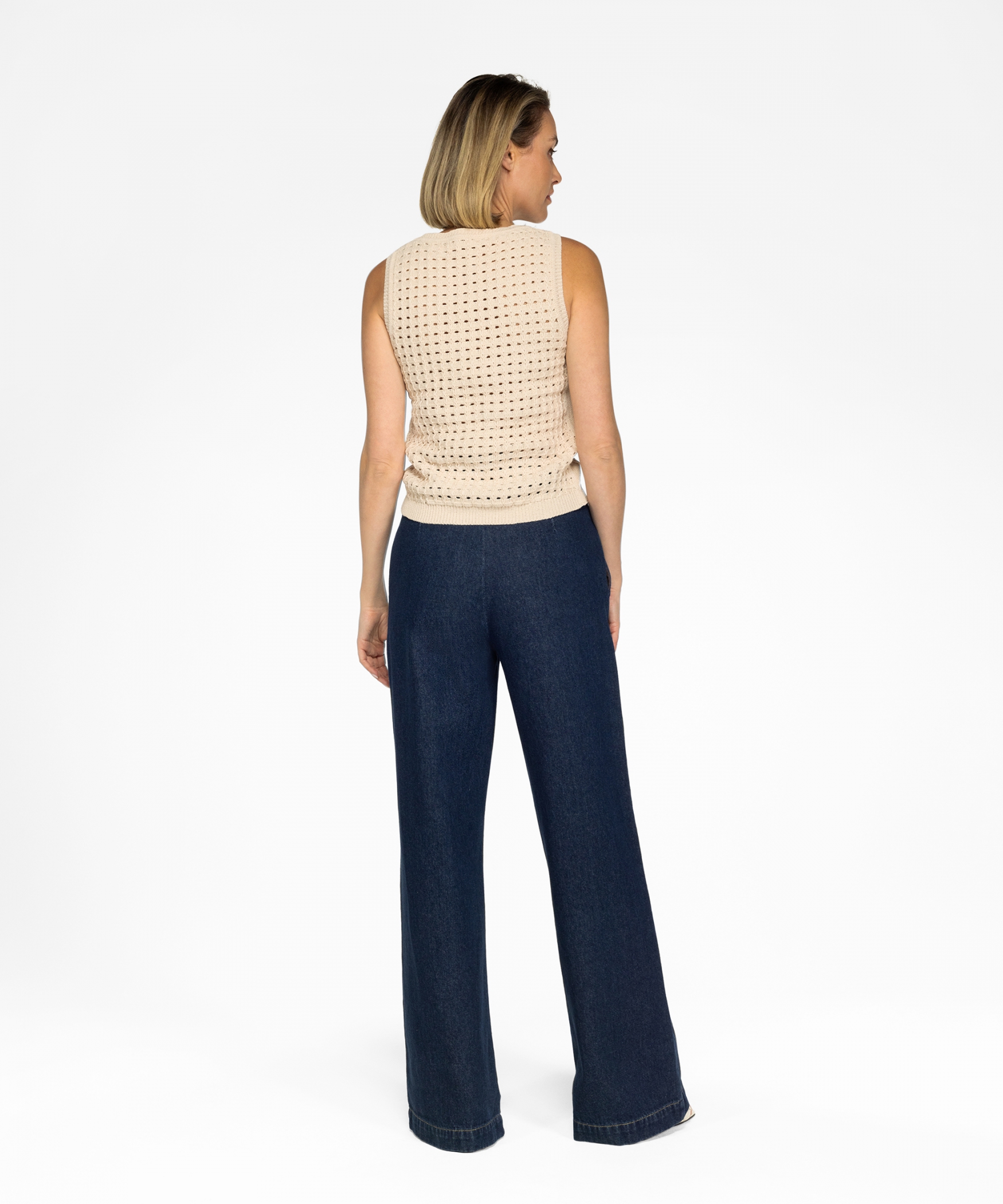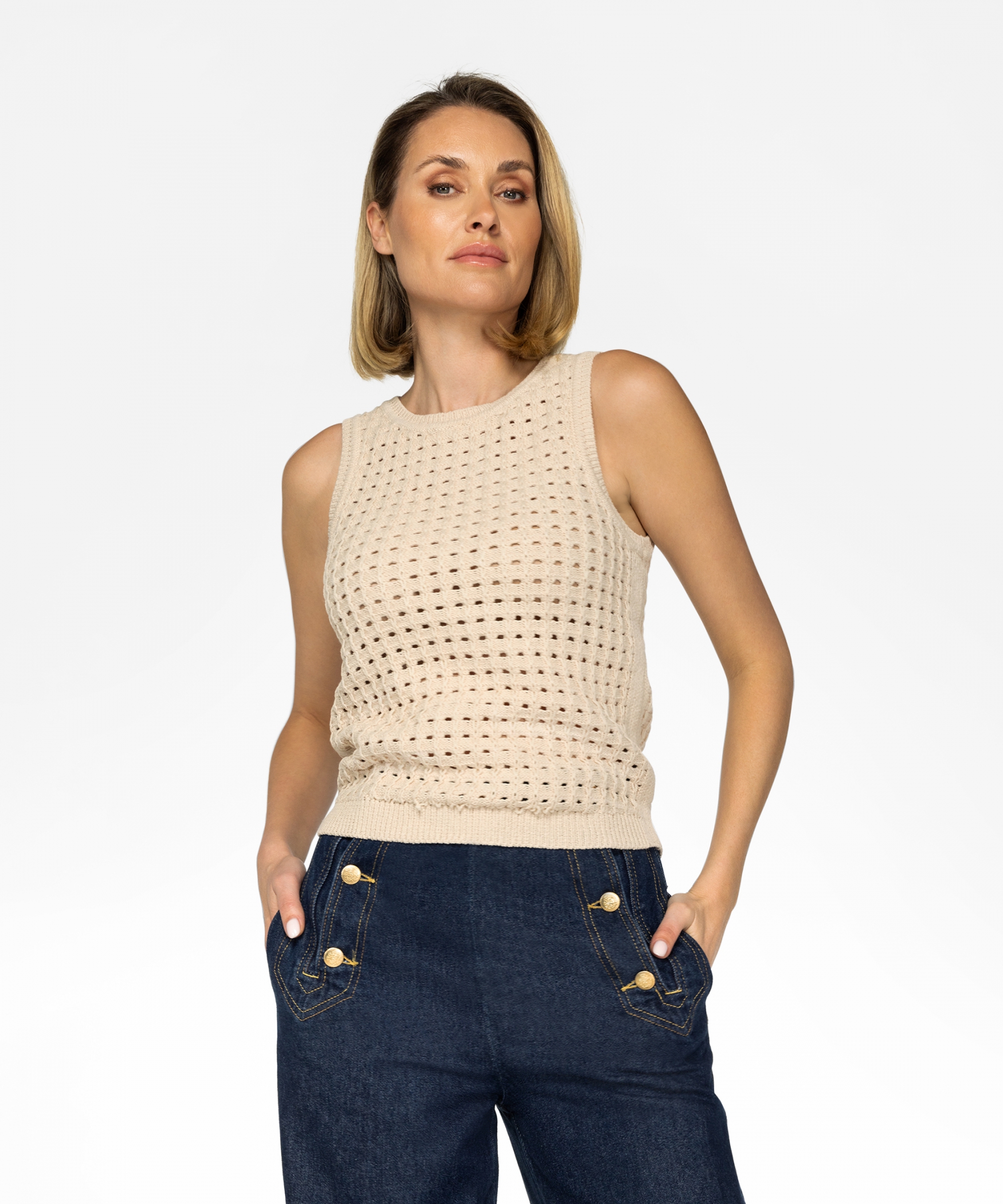 Onze Tessel in de kleur Antique White is het perfecte gebreide top voor de zomer en is gemaakt van 100% gerecycled polyester. De ronde hals en rechtvallend pasvorm zorgen ervoor dat dit top over andere kledingstukken kan worden gedragen of als top op zichzelf. De veelzijdigheid maakt het een onmisbaar item in jouw garderobe. Stylingtip: draag de Tessel samen met de Salome shorts voor een luchtige zomerlook. Wil je de top het liefst combineren met een lange broek? Dan past de Pollo Denim broek er fantastisch bij. Ook goed te combineren met de Jahna blazer en de Panama pantalon voor een ton-sur-ton look.
