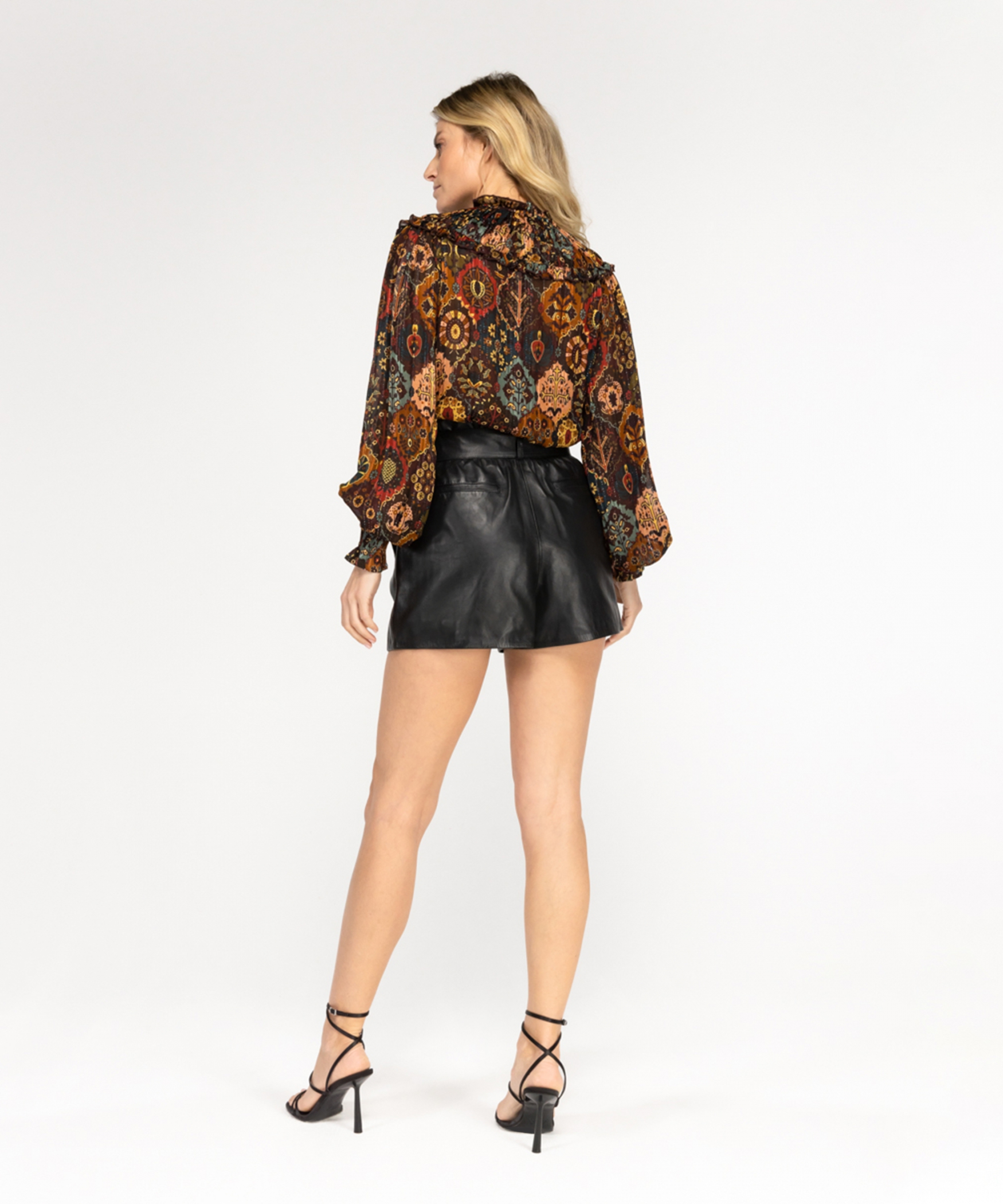 De print bestaande uit warme tonen en de verwerking van lurex in de stof geven de blouse een stijlvolle uitstraling. De kraag is rond en prachtig getailleerd uitgewerkt. Onderaan het boord en aan de mouwen is met stretch materiaal een pof-effect gecre�erd. Deze blouse is gemaakt van viscose. Viscose is een fijn, luchtig materiaal waardoor de top zich perfect leent om te dragen in de zomer. Stylingtip: De Tiany blouse in de print Patchwork Flora is een mooie blouse in boho stijl die je in combinatie met het rokje Sira kunt dragen als set maar ook heel goed anders te combineren is. Je draagt deze blouse makkelijk op een jeans of een pantalon voor een trendy look.