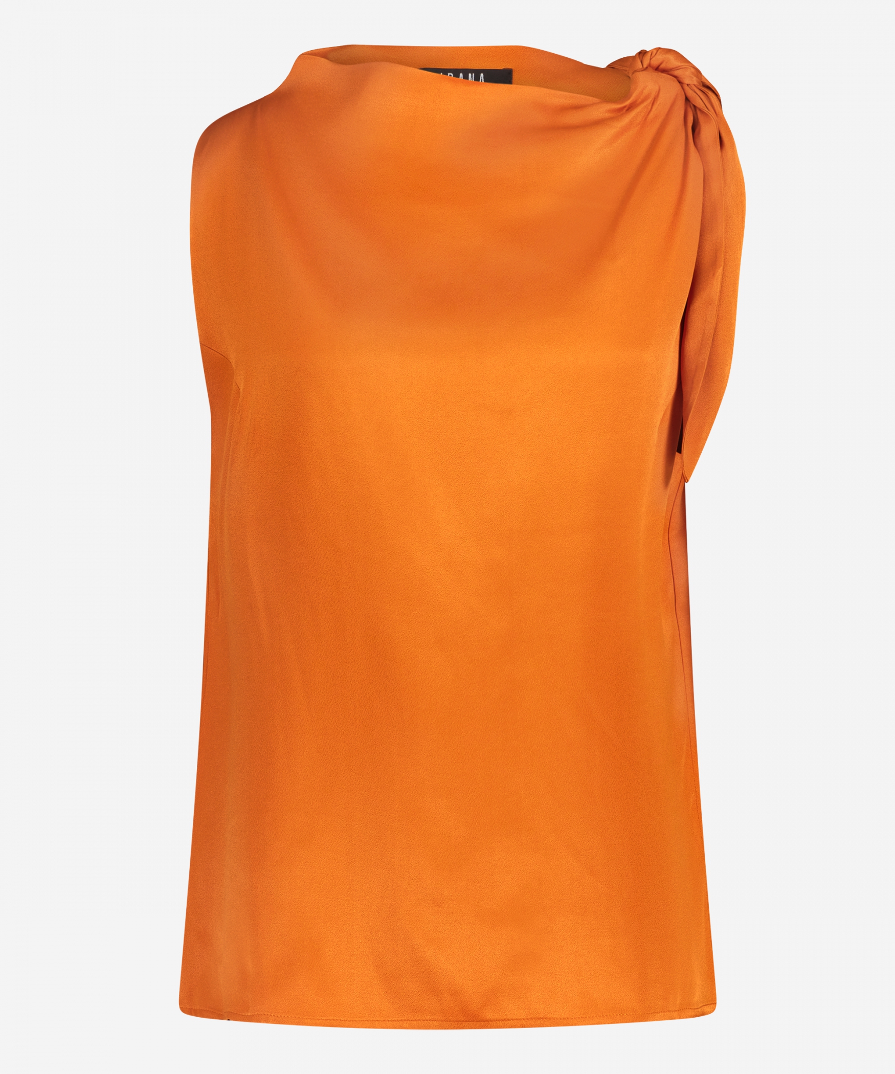 Dit Tilse top in deze on-trend kleur Goldfish. Deze blouse is een perfect item die je elk seizoen kunt dagen. Door het mouwloze model, de striksluiting op de rechterschouder en de hoog aangesloten hals krijgt de blouse een klassieke uitstraling. De Tilse is gemaakt van het luchtige materiaal viscose en hierdoor leent deze top zich perfect om in de warmere lente en zomerdagen te dragen. Stylingtip: Met het Jante jasje in verfijnde print en de Peike in dezelfde kleur Goldfisch ben je klaar voor elke gelegenheid!