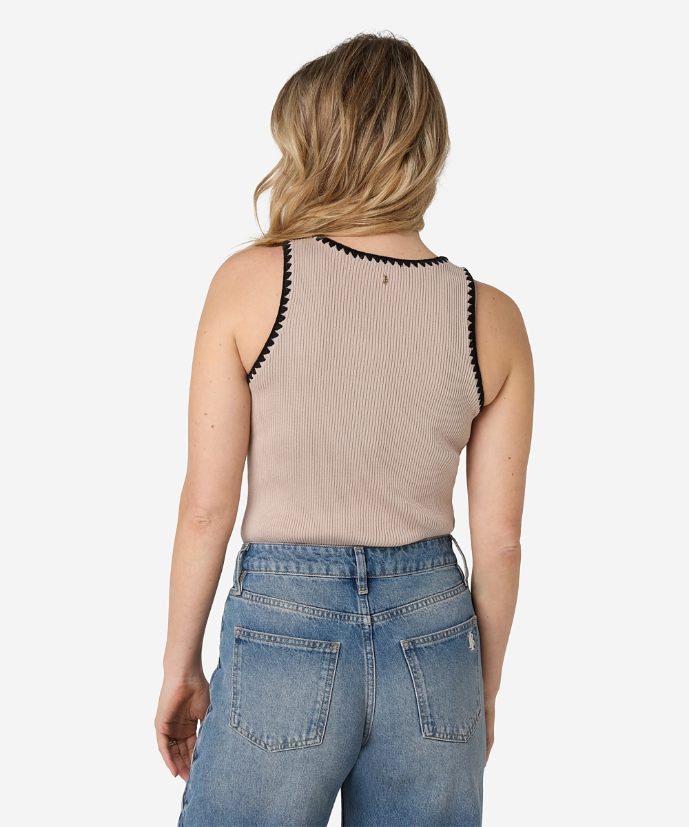 De Timora top in de kleur Ostra Beige is een vrouwelijke basic die niet kan ontbreken in je garderobe. Deze mouwloze top is gemaakt van 100% katoen, bevat stretch en heeft een flatterende, getailleerde fit met een ronde hals. Dankzij de zachte stof en aangesloten pasvorm is de top ideaal om in laagjes te dragen of stijlvol op zichzelf. Combineer de Timora top met de Poseph jeans voor een casual look.