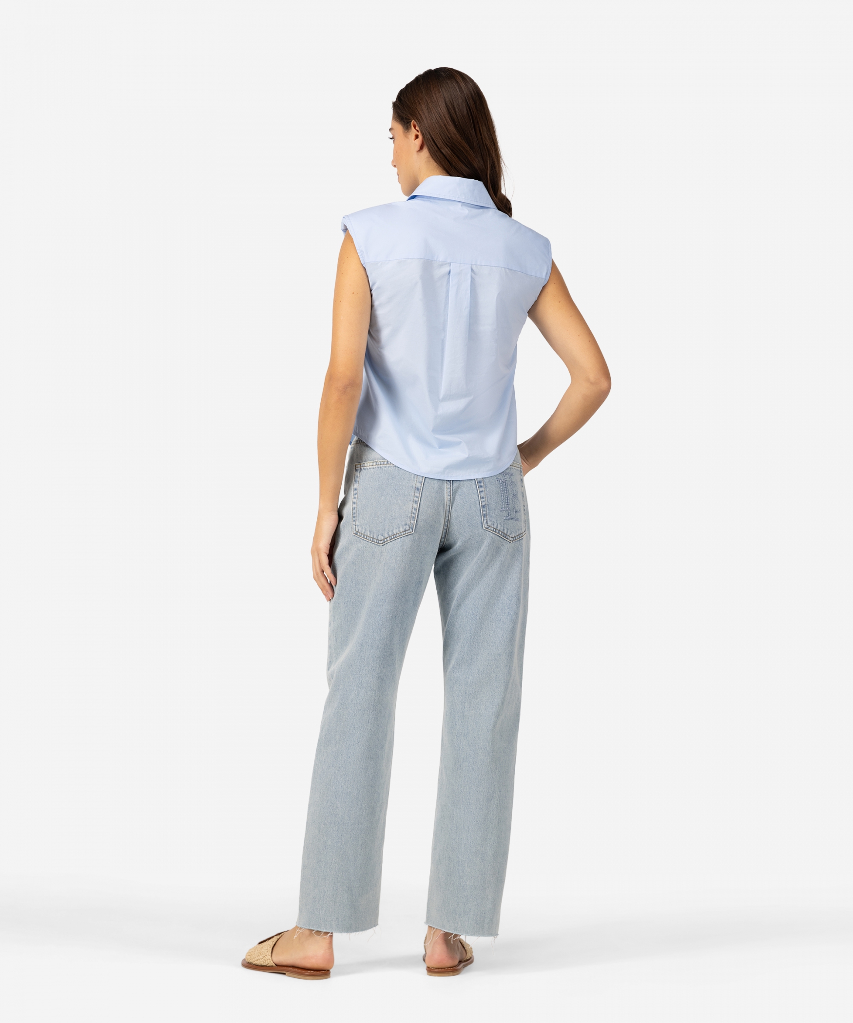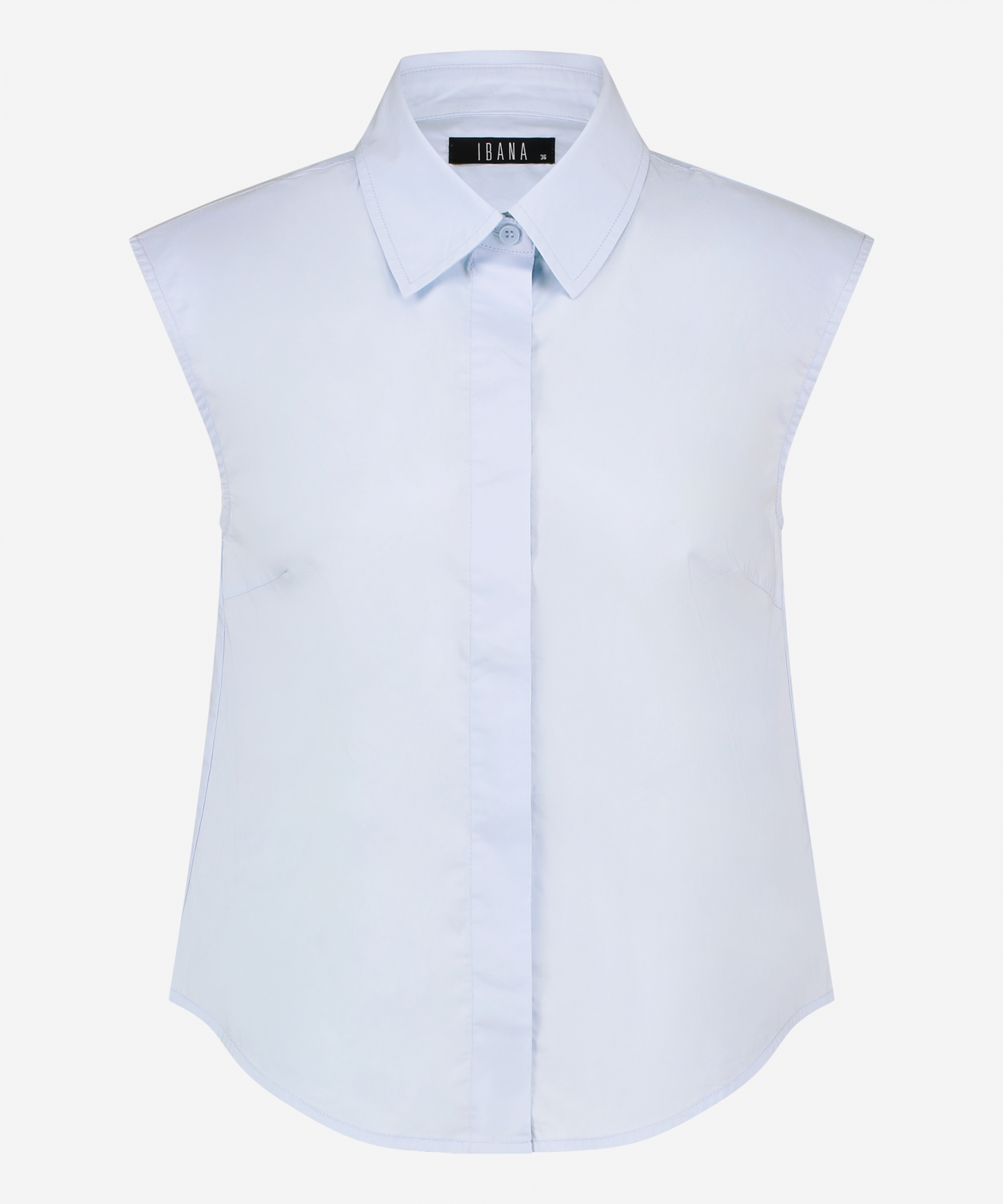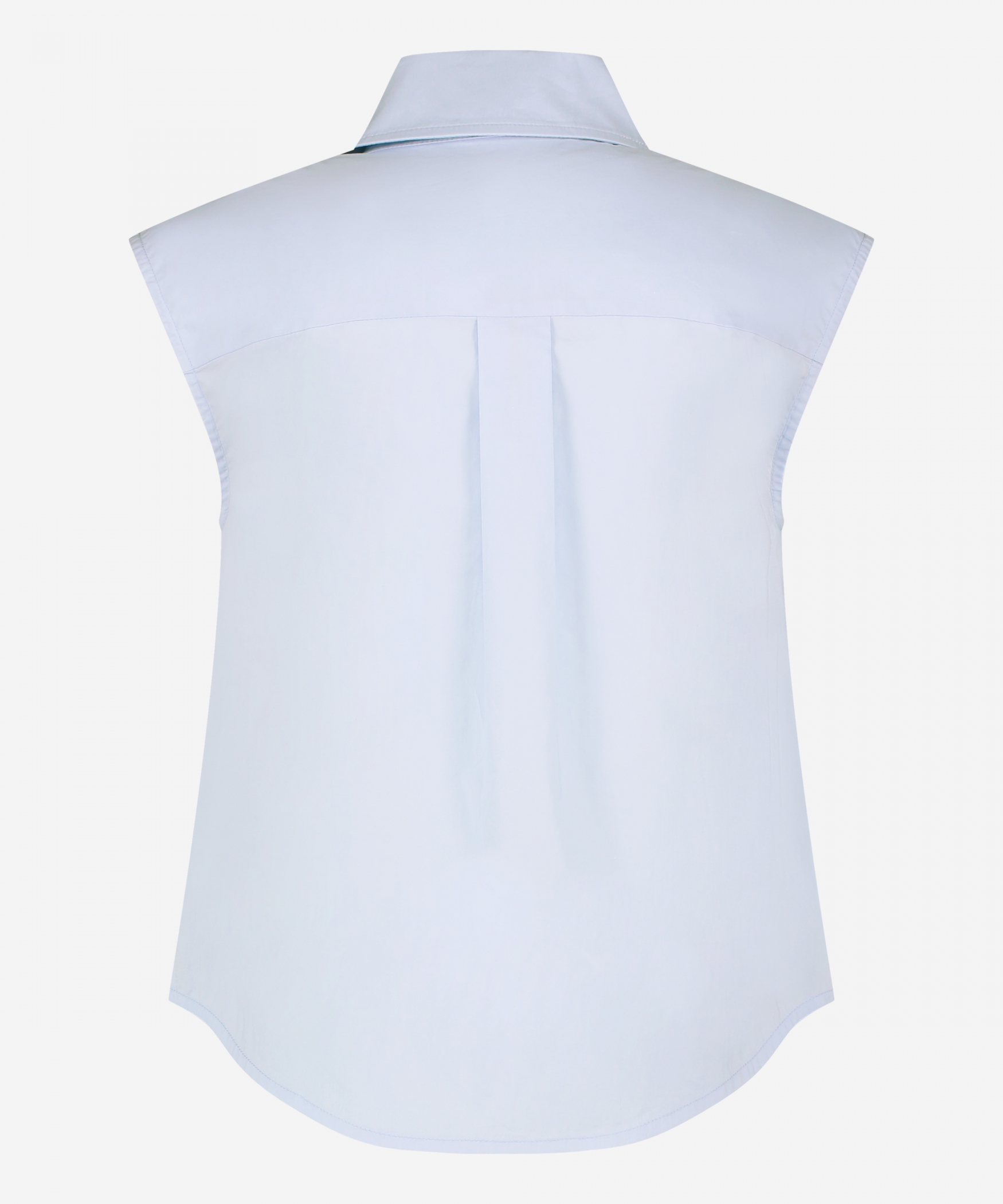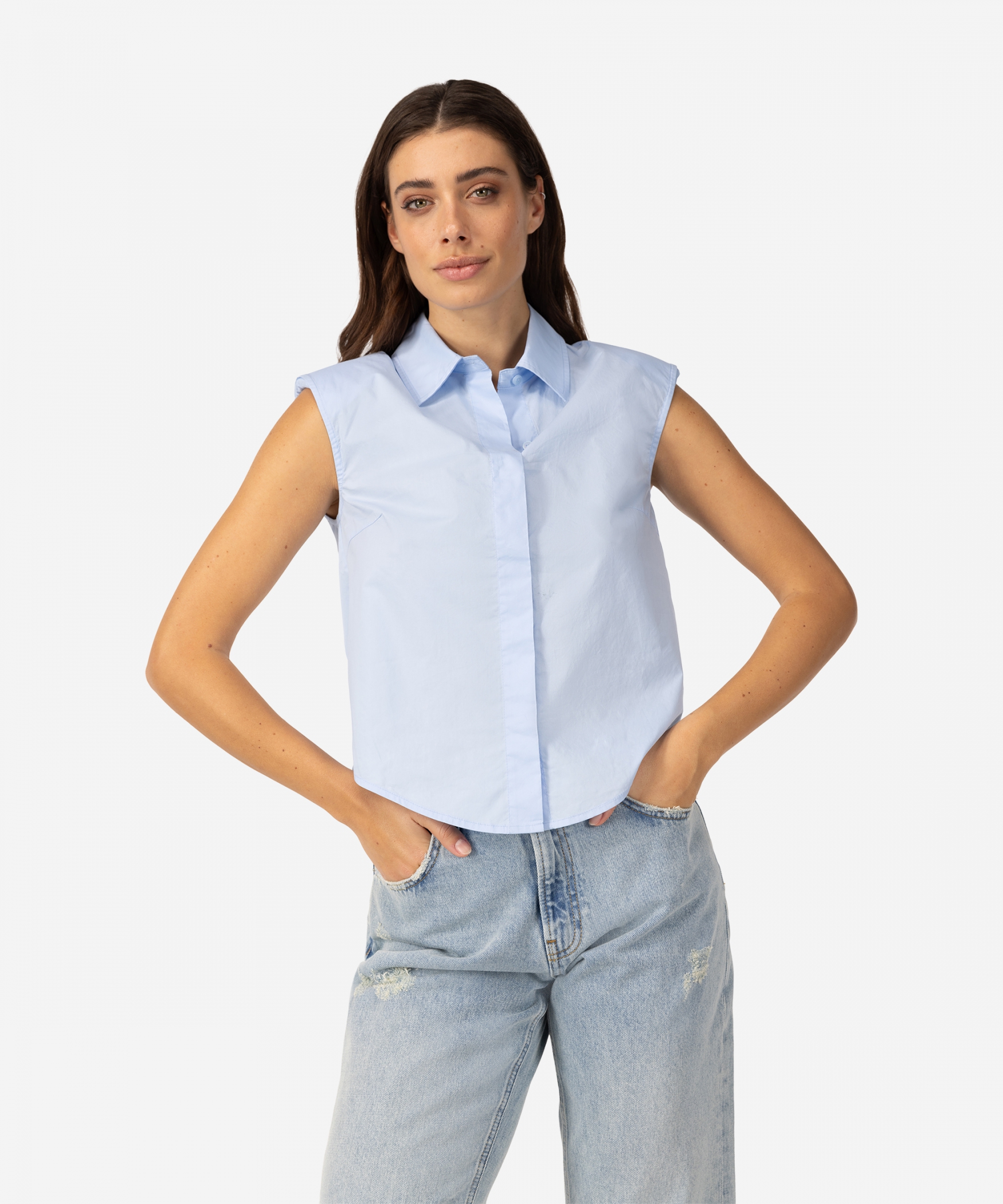 Maak kennis met de Tindara Top in de kleur Blu Tenue. Deze mouwloze top heeft shoudervullingen, een kraag en een blinde knoopsluiting. Draag de top net als het model met de stoere Phelan Jeans en je bent ready to go!| Categorie: | Tops en Truien |