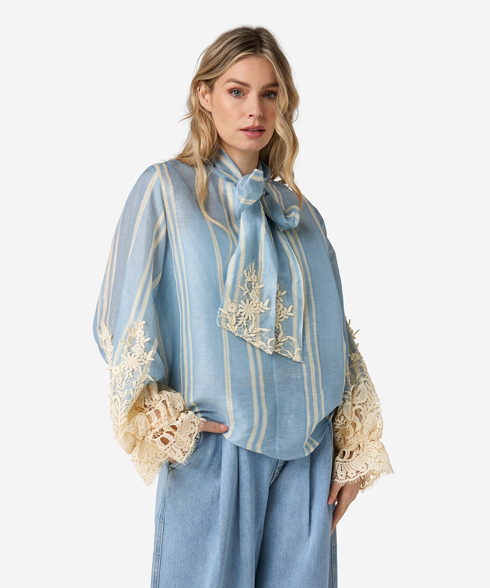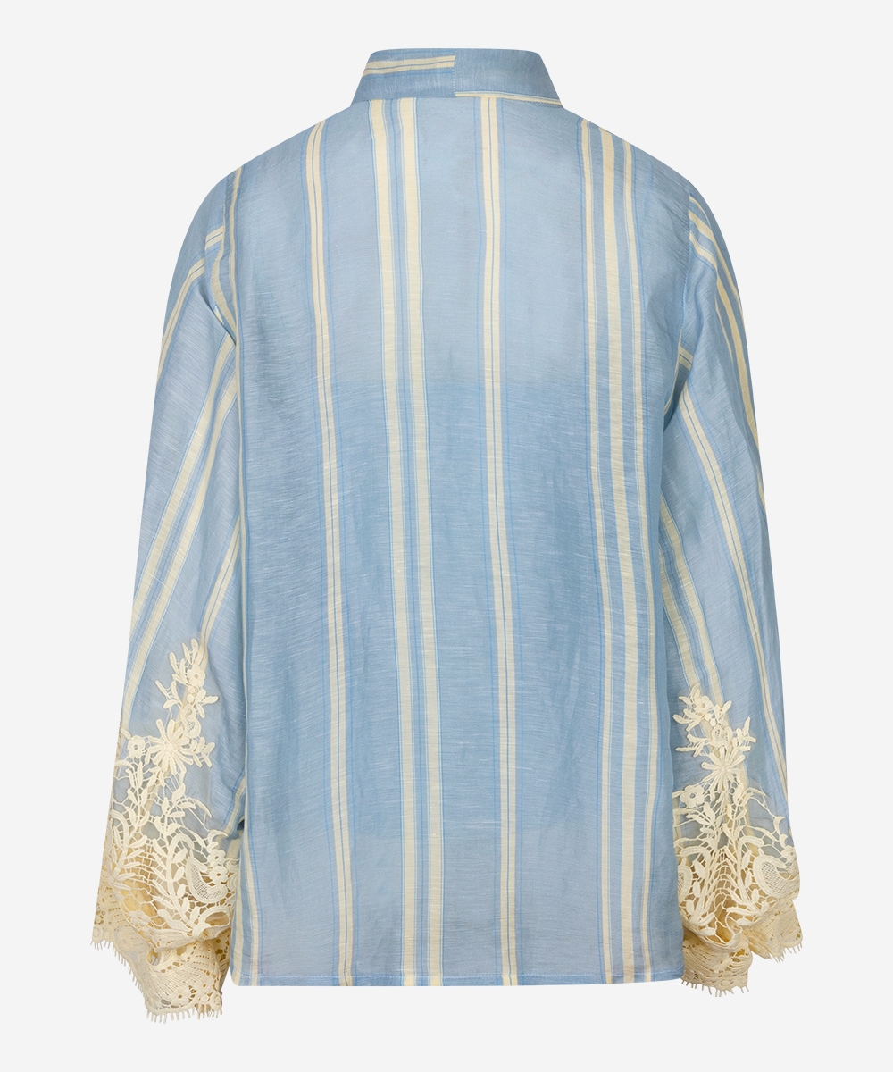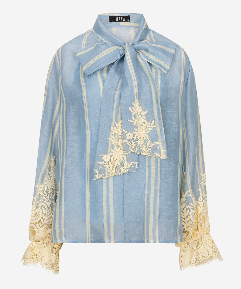 De Tivina top in de kleur Blu Lato is een luchtig en vrouwelijk item met speelse details. Deze top is gemaakt van 100% linnen, heeft een wijde fit, v-hals en subtiele beige streepjes voor een zomerse uitstraling. De mouwen zijn afgewerkt met een verfijnd embroidery patroon en in de nek zit een strikdetail dat zorgt voor een charmant accent. Combineer de Tivina top met de Pristina pants voor een stoere, vrouwelijke look of ga voor de bijpassende shorts voor de ultieme zomeroutfit.