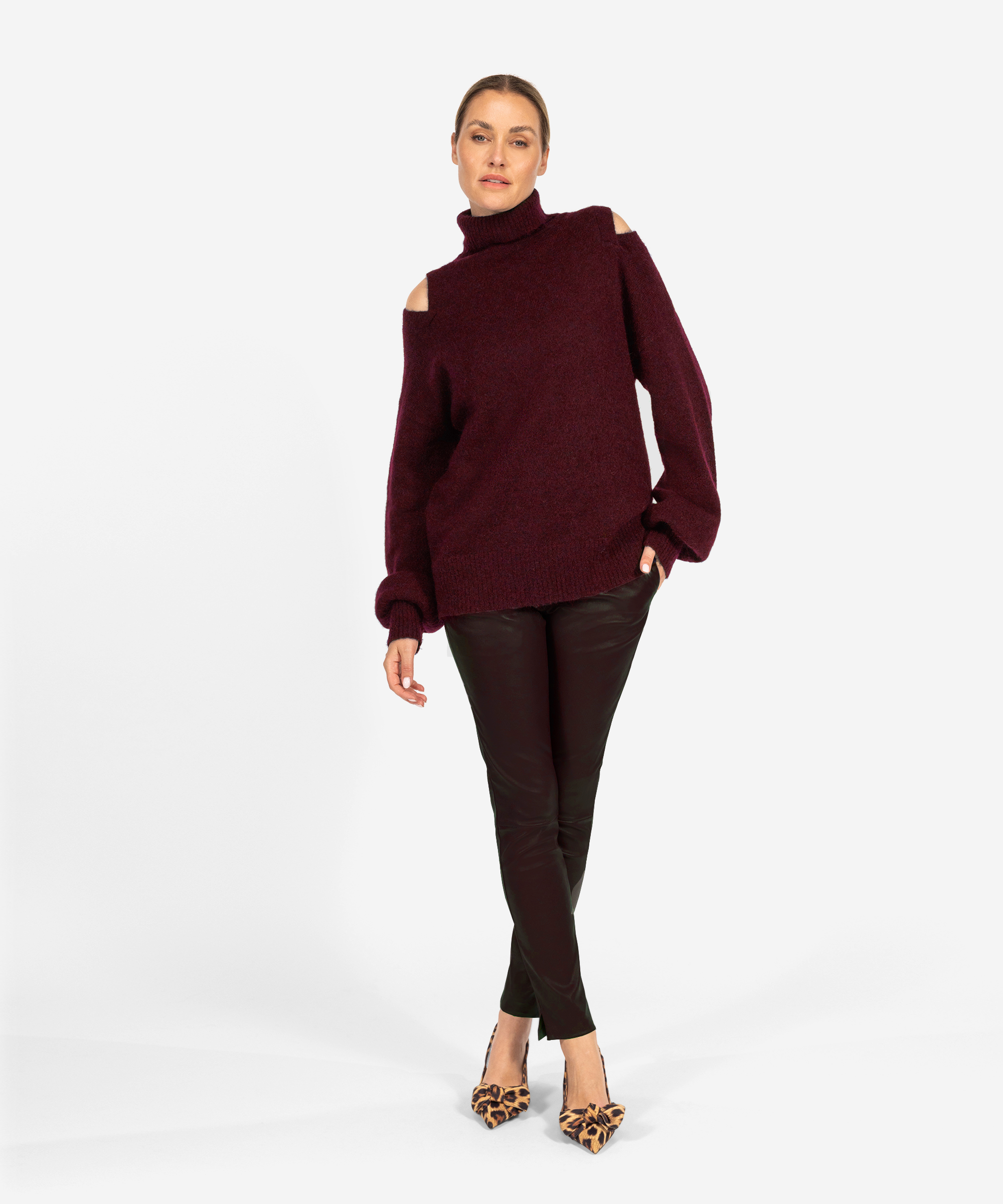 Maak kennis met onze oversized trui Tjico in de kleur Burgundy. Deze trui is gemaakt van een luxe wolblend en heeft een comfortabele col en een wijde pasvorm. Een bijzonder detail zijn de gedeeltelijk blote schouders, die de trui een trendy en speelse uitstraling geven. Draag de trui in je broek om extra volume en een nonchalante look te creëren. De Tjico trui is perfect voor zowel een ontspannen dag thuis als een stijlvolle casual outfit. Combineer hem met je favoriete jeans of een elegante rok voor een veelzijdige winterse look, of combineer de Tjico Burgundy met de Colette Pants in dezelfde kleur voor een ton sur ton look.Categorie: | Knitwear |