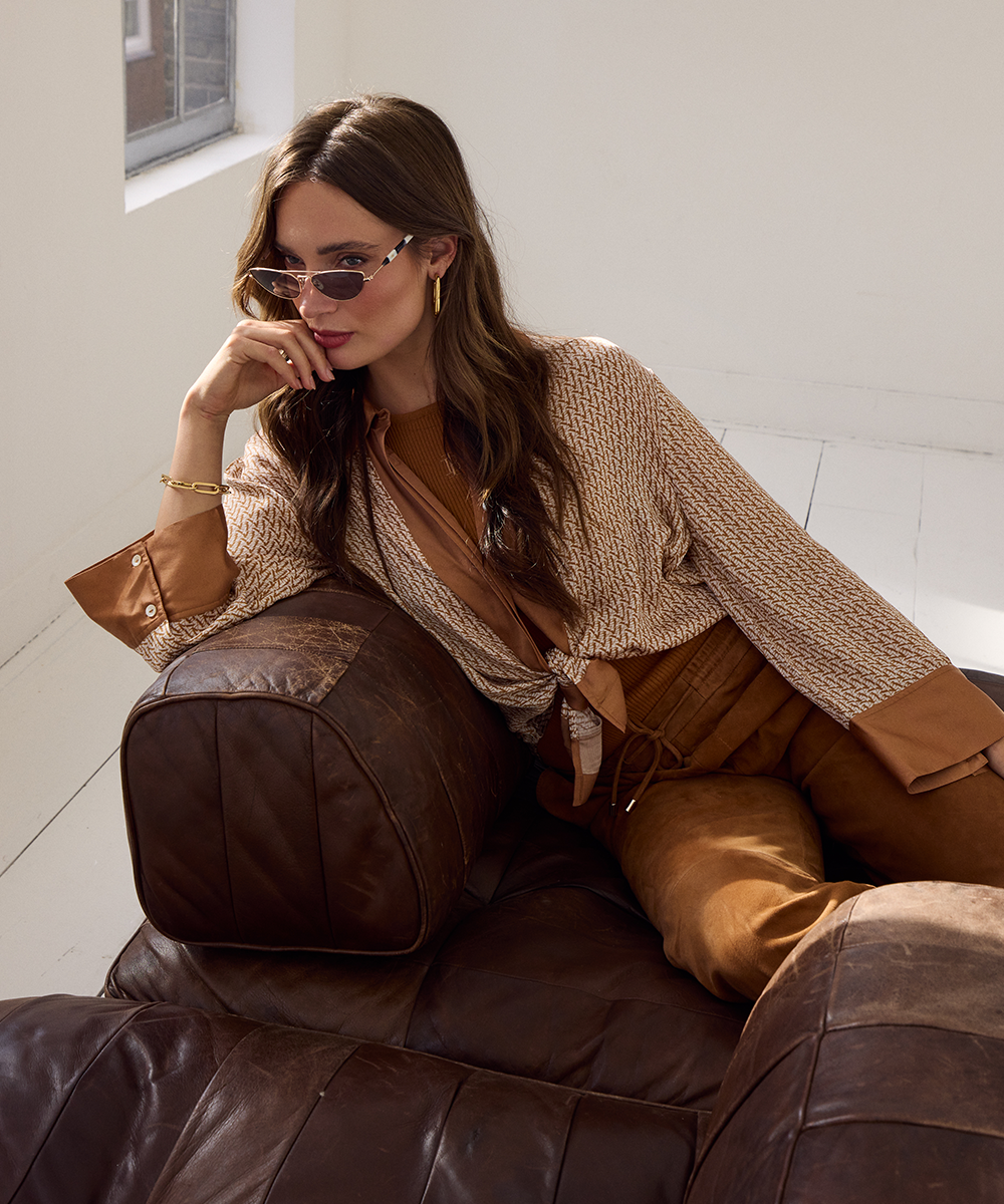 De Tafine blouse in Cashew Brown is gemaakt van glanzende satijn viscose en bedrukt met een all-over IBANA print. De regular fit, wijde mouwen en onzichtbare knoopsluiting zorgen voor een elegante en luxe uitstraling.Styling tip: Combineer net als het model met de Phelan jeans en de suède Acro belt in Cashew Brown voor een vrouwelijke look met een luxe touch.