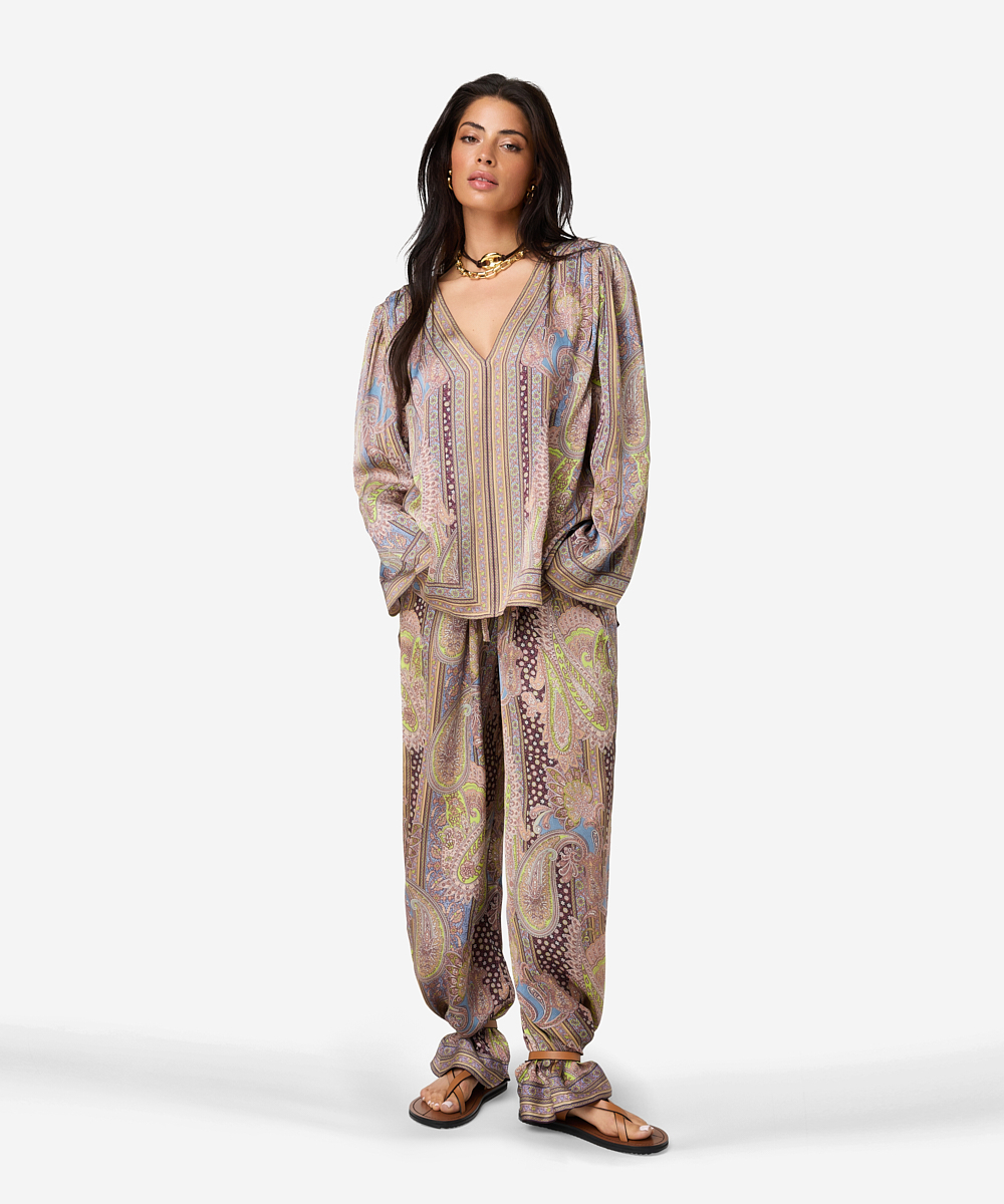 De Tyza top in Petal Flow is een elegante top met een V-hals en een wijde pasvorm die soepel om het lichaam valt. De top is gemaakt van 100% viscose en heeft een non-stretch kwaliteit. De top is voorzien van uitneembare schoudervullingen en aan de zijkanten van de Tyza zit een subtiele split. Combineer met de Piero Petal broek voor een stijlvolle co-ord set of draag de items los van elkaar.