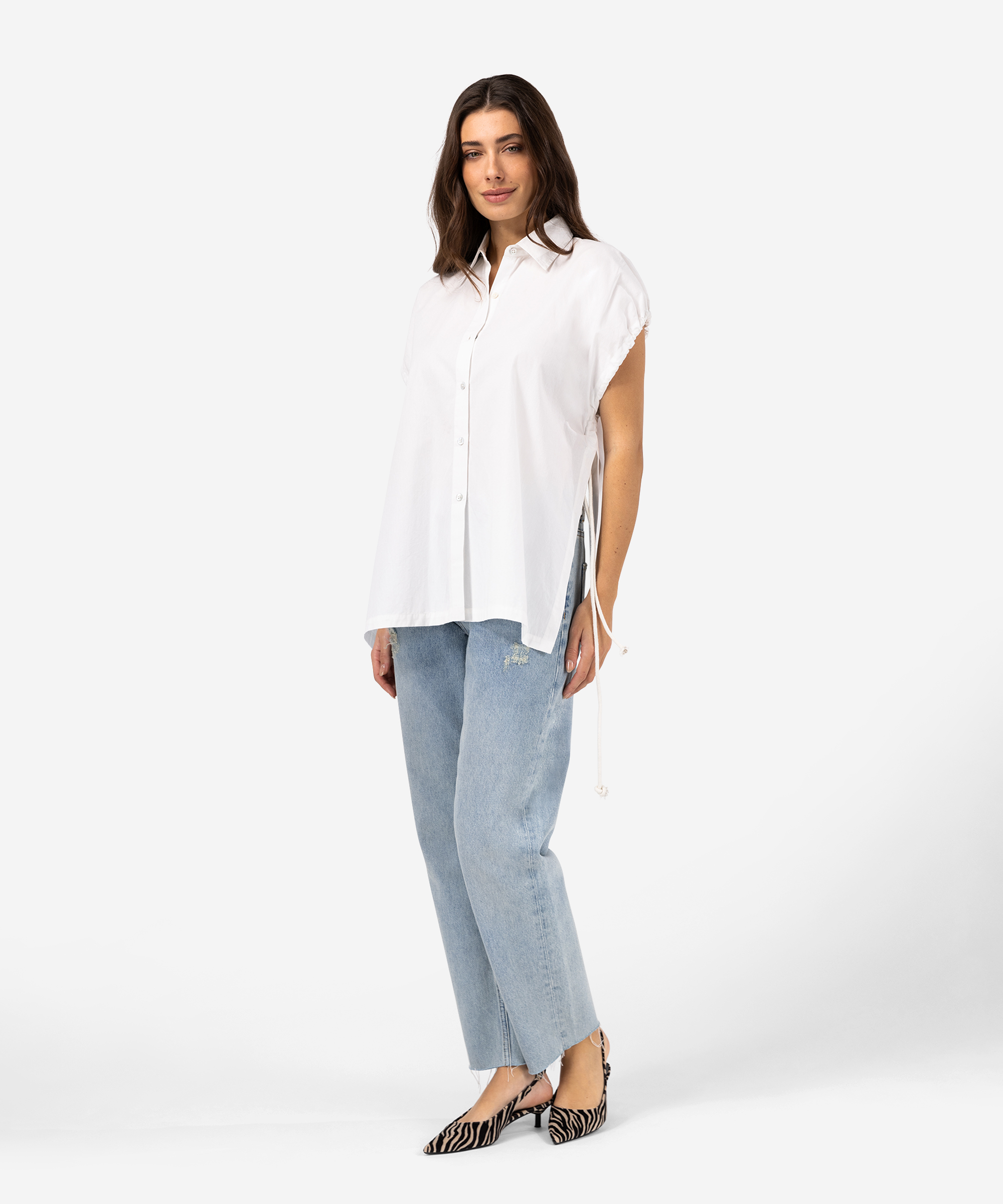 Ontdek de 100% katoenen Toryn Top in de kleur Puro Blanco. Deze blouse valt wat langer, heeft een kap mouwtje met een touwtje om het zo te stylen hoe jij zelf wilt. Ook heeft de blouse aan beide kanten een hoge split, wat een witte basis blouse net wat specialer maakt. Draag de Toryn op de Pristina of de Phelan jeans en je bent ready to go!| Categorie: | Tops en Truien |