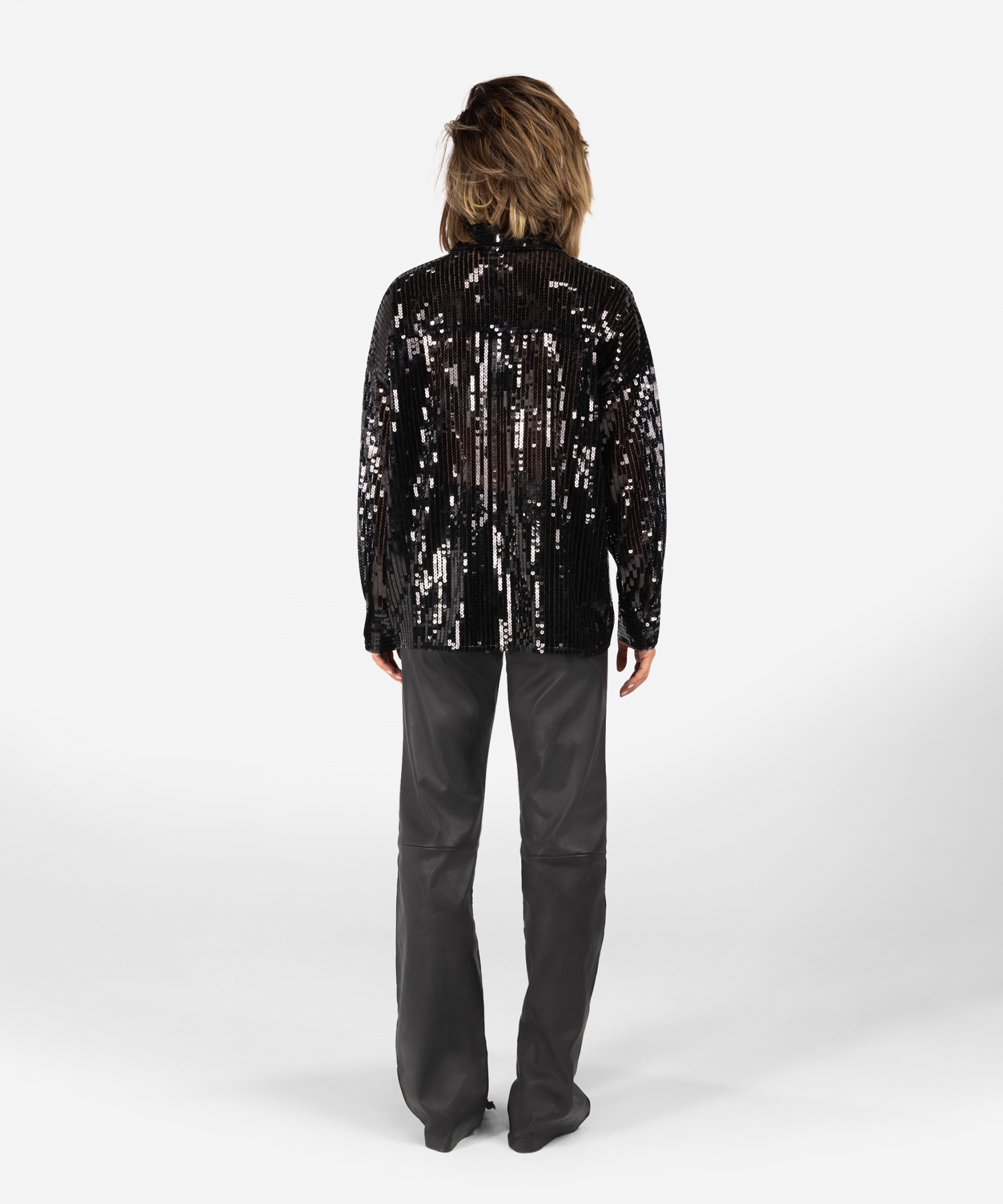 De zwarte see-through Tovo top heeft prachtige pailetten. De blouse kan worden gesloten door middel van knoopjes maar je kunt de blouse ook leuk strikken aan de voorkant! De Tovo is een feestelijke blouse voor day en night. Stylingtip: draag de Tovo tijdens feestelijke gelegenheden met onze leren Pallora Pants of combineer de blouse met jouw favoriete jeans voor een meer casual look! Op zoek naar een iets meer geklede look? Draag dan onze best-stelling Eden Top eronder.| Categorie: | Tops en Truien |