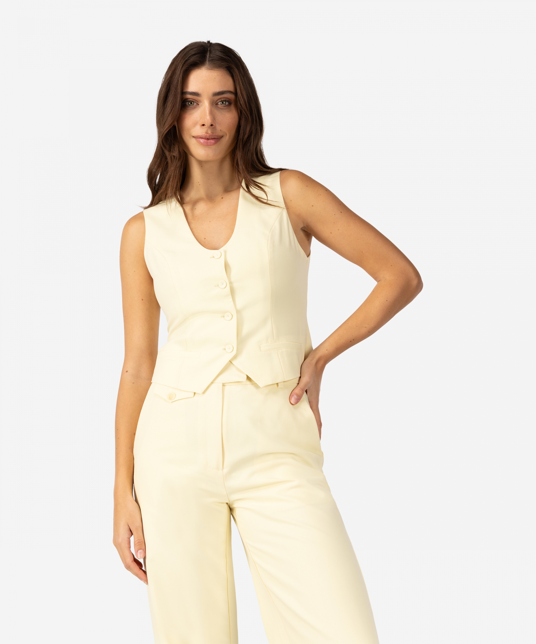 Ontdek het Toya Gilet in de trendkleur Giallo Tenue. Het gilet is getailleerd, heeft een ronde hals en kan door middel van vier knopen worden gesloten. Stylingtip: combineer de Toya met de bijpassende Palty Pantalon of Salty Skort.| Categorie: | Tops en Truien |