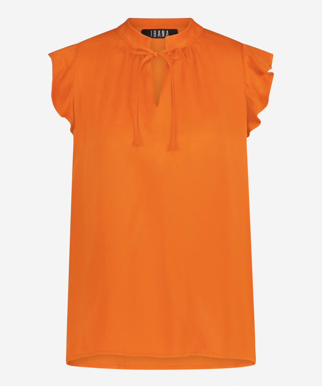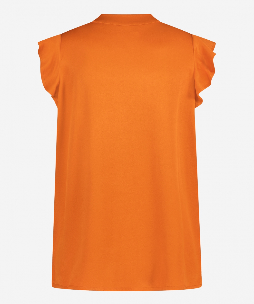 Maak kennis met de Trude. De Trude in de kleur Goldfish is een top die veelzijdig te combineren is in de kwaliteit viscose. De Trude heeft een kort mouwtje en is afgewerkt met ruches bij de schouders voor een speels effect. Door de effen stof in deze statement kleur Goldfish is de Trude goed te dragen op een leuke jeans of een rok. Een matchende outfit cre�er je door de bijpassende Peike of de Phien broek onder de blouse te dragen in dezelfde kleur.